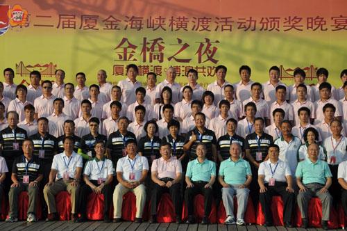 第二屆金廈海峽橫渡活動的聯歡晚會,昨晚在廈門五緣灣木棧道廣場熱鬧舉行,金門縣長李沃士、議長王再生、廈門市副市長葉重耕共同頒發「第二屆金廈海域泳渡證書」予完成泳渡金廈的選手,並相約明年廈門「再見」。晚會中也有歌舞表演節目,來賓和選手共聚一堂,歡慶泳渡活動成功又圓滿。 昨晚的頒獎晚宴,選手們都參與,廈門市副市長葉重耕帶領主管幹部歡迎金門縣長李沃士所帶領的縣府主管和學校校長、承辦活動的工作幹部以及議長王再生、議員蔡水游、林孫全、許燕道、唐麗輝、歐陽儀雄、王碧珍等來賓。 廈門市副市長葉重耕歡迎兩岸四地的泳士及各界來賓共同參與「金橋之夜」,增進情誼。他表示,金廈海峽橫渡活動的舉辦和影響力,已超出活動本身,成為構建兩岸情誼的橋樑,也是連接兩岸四地的黃金泳道。葉重耕感謝金廈兩岸的協辦單位和工作人員,他歡迎大家搏浪共飲,盡情歡樂。 金門縣長李沃士也感謝參與活動的工作夥伴所付出的心力,在大家的努力下,讓第二屆金廈海峽橫渡活動,圓滿又成功。 李縣長也對這一次活動的男、女主角「泳士」們,表示感謝之意。他說,從小金門雙口和議長王再生、廈門市副市長葉重耕搭乘小船陪著選手游向廈門,這也是他生命中的第一次體驗,尤其是看到選手們與大海搏浪、奮力前進的景象,令人感動。當他在椰風寨海灘迎接上岸的泳將,在七千多公尺的泳程,以無比勇氣與毅力,挑戰自我體能的極限,在驚濤駭浪中完成「泳渡金廈」的壯舉,可以感受到選手的辛苦,但是選手拚搏的毅力,乘風破浪跨越金廈水域,會在每位泳士人生的經驗,留下不可抹滅的記憶。 李縣長也和泳士們相約明年廈門「再見」。他也誠摯邀請有更多好朋友一起共襄盛舉,繼續為這項有意義性的金廈海峽橫渡活動,共同創造更美好的未來。 選手們喜悅的從金門縣長李沃士、議長王再生、廈門市副市長葉重耕等來賓手中接下泳渡證書和紀念盃,要和家人及好朋友共同分享這一份驕傲的果實。 副市長葉重耕也贈送李縣長、王議長紀念品,還有協辦單位、贊助廠商紀念品。 議長王再生希望透由金廈海域泳渡活動,更緊密拉近兩岸四地的情誼和關係。 晚會也推出歌舞表演的節目,炒熱現場的氣氛,也吸引廈門民眾前來看熱鬧,感受活動的歡樂氣氛。活動中也邀請兩岸四地選手代表拚搏喝啤酒,選手卯足勁拚酒,以酒會友。 晚宴也有特別的「上菜秀」,由學生扮演古代將士,手持貼有廈門各種地方小吃的盾牌,在熱鬧的音樂聲中,引導工作人員端出菜餚,宴請來賓和泳士們,「上菜秀」的聲勢,也讓大家感受到「東道主」的熱情。