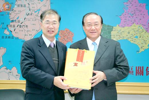考試院院長關中昨日傍晚率同考選部長楊朝祥、典試委員邱聰智等人,在金門縣政府聽取縣府人事業務簡報。他對於縣府提出編制總員額數比照澎湖縣政府員額數增加為六百一十八人案等四項建議,表示都會帶回去主動針對問題作研究,希望很快給縣府說明和答覆。 關中也以金門是中華民國一個特殊的地方,過去是保衛台灣的橋頭堡,現在則是兩岸橋樑及台灣民主繁榮的櫥窗,也希望金門早日揮別戰爭陰霾,過正常日子。而在政府是一體的前提下,尤其在考試工作業務上,也會幫助金門來解決問題。對於現行法令不合時宜該修法的,或是地方主動提出需求事宜,都會盡全力來協助。 考試院長關中、國民黨中常委謝龍介等一行十二人,於昨日下午五時三十分前往金門縣政府聽取人事室主任翁正義所做縣府人事業務簡報。並受到縣長李沃士、主任秘書盧志輝等熱烈歡迎。 縣長李沃士由於需出席議會備詢,對於未克前往接機在表達歉意同時,也以陳年金門高粱酒贈送院長等人,希望大家做金酒的推銷員,為金門高粱酒大力推介、宣傳。 李沃士指出,由於縣府在小三通業務承接的著力,今年一月至十一月份,出入境人數已達一百二十萬人次,預估今年全年將突破一百三十萬人次。而在人員編制稍顯不足,又是僑鄉必需服務海外僑民返鄉和對大陸高階外賓的接待等,金門雖人口數不多,但要服務鄉親的項目多,希望考試院協助金門設立公務人員研習訓練中心,縣府願意協調軍方撥用土地,並請考試院多提攜和協助金門。 關中同時並對於縣長李沃士在艱巨選戰中贏得勝利,於道賀同時,期縣政施政為金門帶來繁榮與福祉。 而縣府人事室主任翁正義向考試院所提四項建議,包括:一、請同意金門縣政府編制總員額數比照澎湖縣政府員額數增加為六百一十八人案。二、建請公務人員暨普通考試增設金門考區,嘉惠地方考生。三、請協助設立公務人員研習訓練中心。四、建請協助放寬行政院核復之「金門縣戰地政務時期編制外人員補償自治條例」案。(相關新聞刊二版)
