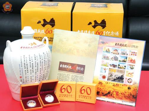 紀念古寧頭戰役六十週年,縣府將送給縣民紀念郵票、紀念銀章以及五公升紀念酒三項大禮,今日起自金城鎮開始發送。縣府民政局指出,三項大禮之發送對象之造冊日為九十八年六月五日,於造冊日後不幸往生者,比照配酒模式,家屬可持相關證明文件代領。 古寧頭戰役將屆滿六十週年,縣府為喚醒世人銘記戰爭代價並緬懷先烈之犧牲精神,縣府推出三項好禮相贈,包括紀念銀章、紀念酒、紀念郵票;其中,凡於民國三十八年十二月三十一日(含)以前出生,民國八十一年十一月七日(含)戰地務終止前,曾設籍金門,且現設籍金門之現住人口,每人可領乙枚紀念銀章(死亡除籍者外),全縣可領總數為一萬三千三百七十一人。 古寧頭戰役六十週年五公升瓷瓶紀念酒部份,贈送對象自民國五十年十二月三十一日前出生,民國八十一年十一月七日(含)戰地政務終止前,曾設籍金門,且現設籍金門之現住人口,不過,民政局表示,經鄉親反映,於九十八年六月五日造冊日後不幸往生者,家屬比照家戶配酒模式,持相關證件代領,全縣可領總數為二萬四千八百○九人。另外,紀念郵票方面是以家戶為單位,凡九十八年六月五日造冊前所設之戶籍皆為贈送對象,全縣可領總數為三萬一千二百三十三戶。 古寧頭戰役六十週年紀念品十月九日起發送,自金城鎮始,民政局表示,三項紀念品由各鄉鎮村里辦公處代為發送,排定時間如后:金城鎮十月九日至十月十日;金湖鎮十月十一日至十月十二日;金沙鎮十月十三日至十月十四日;烈嶼鄉十月十五日至十月十六日;金寧鄉十月十九日至十月二十日。