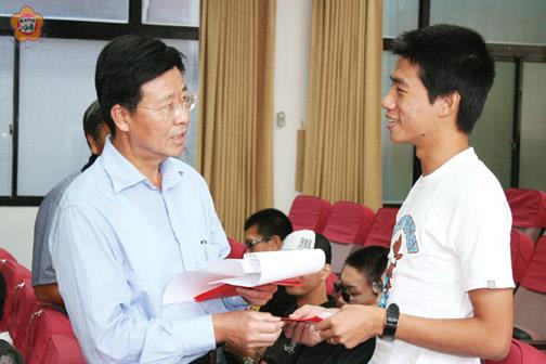 教師節剛過,縣長李炷烽昨日下午接見四位(其中,楊和平老師赴台)春風化雨超過四十年的教師及獲得第四屆教育奉獻獎的退休教官張序伯,除了肯定他們在教育工作的奉獻,也恭喜他們四十年如一日的堅持,獲得教育部表揚和總統馬英九接見嘉勉。 這四位連續服務教育界超過四十年的資深優良教師,包括:中正國小教師兼導師李增椿、湖埔國小教師兼總務主任楊和平(已退休)、古城國小校長李仁木、金沙國小教師兼教導主任李榮金(已退休)。另外,於九十三年十一月中旬以中校軍職退休的張序伯,今年獲得第四屆教育奉獻獎,他們並已於九月二十八日上午九時五十分在台北市陽明山中山樓,接受教育部表揚,中午並接受總統馬英九餐敘嘉勉及合照。 縣長李炷烽對於資深優良教師一轉瞬服務四十個年頭,以及退休教官服務社會更多,是表達肯定和敬意,值得大家多學習。 昨在場作陪的,有縣府教育局長李再杭、主任督學陳金文、課長許能麗等人。李炷烽並轉頒教育部獎座予得獎教師。