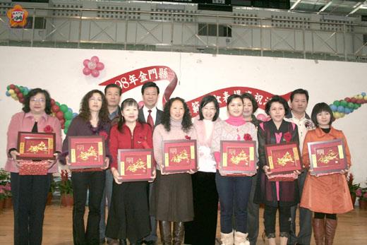 98年度金門縣模範婦女表揚暨慶祝活動,昨日熱鬧舉行,縣長李炷烽頒獎表揚杜秀蓉等25位模範婦女,推許婦德表現,也強調縣府十份重視婦女的政策,在議會的支持下,會繼續提供更多照顧婦女的福利政策。議長謝宜璋也對婦女無怨無悔的為家庭辛苦付出、以及對社會的貢獻,深表敬意。 由金門縣政府主辦、社團法人金門縣婦女權益促進會承辦的這項全縣性婦女節慶祝表揚活動,昨日上午九時在縣立體育館熱鬧展開,縣長李炷烽賢伉儷、議長謝宜璋、副議長許玉昭、議員李沃士、縣府社會局長許乃權、金城鎮長蔡輝詩、鎮代會主席陳天成、金寧鄉代會主席李正騰、立委陳福海國會辦公室主任黃秀珍、金門服務處主任徐鴻義等來賓到場向婦女們表達賀節之意。地區縣屬單位女性主管,包括:縣府主計室主任李秀荷、本報社長黃雅芬、林務所長葉媚媚、監理所長梁惠群也到場和金門縣婦女權益促進會理事長鄭倪佩輝、婦女會理事長陳麗玉以及婦女姐妹一起分享婦女節的節日。 縣長李炷烽致詞時特別先向婦女節的主角婦女們賀節,祝福所有婦女們佳節快樂、家庭平安幸福美滿。他也對受表揚的各鄉鎮模範婦女,表示肯定與祝福之意。 李縣長說,在三八婦女節的這一天,馬總統也特別發表一篇專論,向全國婦女同胞賀節與祝福。馬總統希望中華民國的婦女政策能帶給全國婦女同胞一個安全無虞、平等尊重,以及資源共享的社會。 李縣長說,婦女們對於社會、家庭都扮演著重要的角色,不僅要做為子女的好媽媽、丈夫的好老婆、公婆的好媳婦、爸媽的好女兒,相當的辛苦。他說,事實上,社會和家庭如果缺少女性,就不是完整的家,社會也不會安定,為此,中國人在造字也很藝術,「安」這個字是蘊含著家庭屋內有個「女字」,就會平安,如果換成是男字,可能所造出的字就不是平安的「安」。從中國的造字,可以反映社會的真實面,有了女性,家就能平安、安心,社會就能安定,也是對婦女最好的肯定,尤其在傳統的社會,金門的婦女更能有所體會。 李縣長表示,金門的婦女在早年艱困的環境中,更是要辛苦的操持家務,從清早上山下海的討生活,忙到三更半夜才稍作休息,就是為了照顧家人的生活。這幾年來,隨著社會慢慢的進步,生活有了改善,許多婦女們利用餘暇時間,也走出家庭,投入社會的服務工作,在各社團以及政府部門義務擔任志工的絕大多數是婦女,協助政府和社團來執行社會服務的工作,照顧鄉親,也凸顯了婦女的重要性。 李縣長說,婦女的平均壽命也逐漸的延長,從十年前的平均壽命七十八歲,到去年年底已達到八十二歲,除了婦女愈來愈重視自身的健康和生活,政府提供的照顧也愈來愈健全,這是好的現象。未來,在議會的支持下,縣府會繼續提供更多照顧婦女的政策,來照顧婦女。 李縣長強調,縣府的婦權工作也是施政的重點工作,除了政府部門執行的各項婦權政策和提供的照顧服務,也委由金門縣婦女會和婦女權益促進會來協助辦理多項婦女的業務,婦女們除了要照顧好家庭的生活,也鼓勵要走出家庭,來參與社會各種的活動,讓生活更豐富。 李縣長也感謝縣議會在自家編列的預算,從九十五年的一億一千多萬元到今年增加為一億七千多萬元的情況下,也支持婦女政策和活動。 李縣長滿心的感謝和祝福,也期望在未來的活動,有更多婦女們相招來參與活動。在現場婦女的熱情掌聲中,李縣長賢伉儷也以愛的擁抱,來祝福所有的婦女家庭幸福美滿。 議會議長謝宜璋也肯定主辦單位在溫馨的活動氣氛下,讓婦女們無畏寒冷的參與活動,共聚一堂來慶祝屬於婦女們的節日。他說,婦女們不管是辛苦的撫養子女、照顧家人生活,總是對於家庭無怨無悔的付出,也對於社會有許多的貢獻,在婦女節的這一個節日,他深表敬意,更祝福所有婦女們佳節快樂,平安幸福。 李縣長頒獎表揚五個鄉鎮評選出的模範婦女,金城鎮的杜秀蓉、徐明華、李秋鳳、王彩華、劉芳琴、蕭淑玲、周春華、安靜香;金湖鎮的吳美玉、蔡石羨輝、謝碧娥、盧麗娜、鄧彩蘭、陳能鶴、陳彩碧;金沙鎮的張彩鳳、王鈺筑、許麗輝、王秀華;金寧鄉的林寶瑛、楊秀珍、周珠雪、薛惠人;烈嶼鄉的林玉治、方碧桑,各贈送獎狀以及禮品,表達祝賀與肯定之意。 該項活動,並不受限參加的婦女對象,全縣的婦女都可參加,計有一千多位婦女參與活動,也邀請金沙腰鼓舞團帶來腰鼓舞、金城幼稚園小朋友的健康操以及金門縣土風舞協會小朋友表演的中國娃娃等節目,還有金門縣婦女福利服務中心、國標舞研發會、和湖前社區所帶來的舞蹈節目、以及金沙社區的佛舞、極光舞團的中東鼓舞,連串的活動,炒熱了活動的氣氛。 現場也提供了四百多份的獎品,讓參與活動的一千多位婦女都有機會獲得電視機、電冰箱、洗衣機、腳踏車等獎品,由李縣長、謝議長等來賓抽出幸運的婦女,活動持續至午間才告一段落,參加活動的婦女每人帶回一份餐點賦歸。