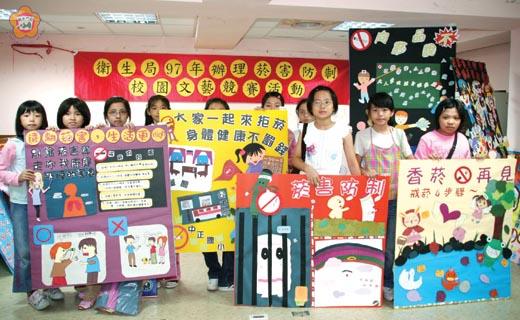 衛生局辦理「菸害防制校園文藝競賽」活動,宣導學生建立反菸意識,並知曉菸品對人體健康的危害,共有二百五十人報名參加,經過評選成績出爐,書法組以及壁報設計組分別由金門高中許涵嵋,以及林馨妮、洪曉儀拿下第一名,衛生局表示,將由各校轉發獎牌和獎金。 衛生局於十一月中辦理「菸害防制校園文藝競賽」活動,吸引全縣國小至高中職學生報名參加書法以及壁報設計比賽,共計有二百五十人報名,各組學生在老師的指導下完成作品,展現美學天份與創意以及對菸害防制主題的詮釋。 衛生局指出,期望透過比賽讓同學更加認識菸品對人體健康的危害,提昇反菸意識,也鼓勵學生加強自我健康照顧,拒絕菸品誘惑,共同創造無菸校園環境,而從報名參加的人數也可顯見校園對菸害防制的重視。 衛生局也表示,新修訂菸害防制法將自九十八年一月十一日起上路,在禁菸場所吸菸最高可處一萬元罰鍰,而禁菸場所未於所有入口處設置明顯禁菸標示或供應與吸菸有關器物,負責人最高將被處五萬元罰鍰,提醒吸煙者以及場所負責人務必遵守規定以免受罰。 衛生局九十七年度「菸害防制校園文藝競賽」活動,共分國小至高中職組,採不計名依編號排序,由洪明燦、楊天澤、唐敏達、王尚修等專業評審評分,結果出爐,各組成績如下: 書法比賽: 高中組,第一名金門高中許涵嵋、第二名金門高中翁承輝、第三名金門高中黃雍、佳作金門高中陳穎延、張似瑋。 國中組,第一名金湖國中葉于菁、第二名金湖國中鄭宇軒、第三名金城國中許庭豪、佳作金湖國中呂佳穎、董容。 國小組,第一名中正國小許弸、第二名金湖國小王昱晴、第三名金湖國小董恬、佳作金湖國小呂奎鋒、洪菱。 壁報設計比賽: 高中組,第一名金門高中洪曉儀、林馨妮、第二名金門高職楊翊玟、第三名金門高職王語渟、佳作金門高中洪怡佳、金門高職林湘晴。 國中組,第一名金湖國中王雯潔、柯宜家、第二名烈嶼國中洪宜華、洪冬華、第三名金湖國中陳泑璇、佳作金湖國中陳儀庭、陳尹阡、烈嶼國中林孜蓉、洪敏華。 國小組,第一名安瀾國小歐陽禹棠、陳葦蓉、第二名安瀾國小梁辛琪、陳念琪、第三名多年國小劉懿文、葉晨曦、佳作中正國小李緯慈、翁榕培、方均嘉、楊又儒、多年國小陳厚禛、莊鈺婕。