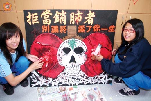金門高中春暉社社長林馨妮、副社長洪曉儀帶頭參與菸害防制壁報設計比賽,兩人發揮創意與巧思,加上美術長才,以沙布和鐵絲製成立體狀雙手,闡述,猶如菸癮者的肺一樣,被握滿菸品的雙手所控制,藉此警惕眾人,拒當銷「肺」者!莫讓菸「霧」了你一生! 林馨妮、洪曉儀,參加九十七年度菸害防制文藝競賽,利用段考後的時間,合力完成作品構思,雖然沒有經過專業的美術訓練,兩人自幼參賽經驗豐富,此次,從衛教圖片中得到靈感,激發創意思考,納入切合主題且能表現的元素,設計完成作品,即切合主題,不離藝術創作,獲得評審的青睞,榮獲高中組第一名。 林馨妮、洪曉儀希望藉由海報告訴所有煙癮者,拒當銷「肺」者!別讓菸「霧」了你一生!