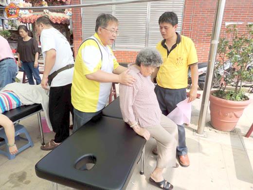關切老年疾病及痠痛問題,淳新手工蛋捲老闆李忠鴻率中醫團隊至湖峰雙忠廟進行義診工作,吸引大批當地的鄉親父老前往看診,中醫師透過推拿按摩為當地民眾服務,紮實的手勁與親切的服務讓當地民眾舉手稱讚,感謝他們下鄉服務、診治筋骨痠痛等症狀。