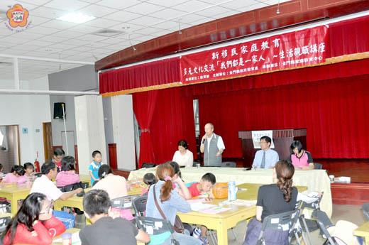 由金門縣政府教育處主辦的「新移民家庭教育」多元文化交流~我們都是一家人生活親職講座,於昨日上午在金城鎮公所展開,邀請光寶文教基金會社區認輔召集人吳銀玉老師開講,教育處長李再杭鼓勵新移民配偶及其家屬參與家庭教育活動,充實親職教育,希望有助新移民融入金門社會和家庭,落實多元文化社會,共建美好家庭生活。 由於社會變遷,地球村的觀念形成,使得異國婚姻已成為台灣特有文化之一,新移民家庭的女性來台後除了要克服語言隔閡與認知差異,婚姻、家庭的適應還要擔負起教養下一代的責任,因此家庭教育中心針對地方多數新移民辦理一系列家庭親職講座,透過多元文化交流的學習與認識,提昇新移民家庭了解不同國籍的文化與差異,進而學習尊重包容與接納,學習婚姻經營與兩性溝通。 這項由縣府教育處、金門縣家庭教育中心依據教育部函所辦理「新移民家庭教育」實施計畫,舉辦多元文化交流~我們都是一家人生活親職講座,於昨日上午九時在金城鎮公所七樓展演廳舉行,縣府教育處處長李再杭主持始業式,縣議員唐麗輝、金城鎮長石兆瑉到場致意,共吸引六十多位新移民及其家人參加。 李再杭指出,金門外來人口逐漸增加,現有大陸暨外配人數共2196人,其中大陸籍人數近二千人佔八成六,印尼、越南、馬來西亞、菲律賓、泰國等外配共292人佔一成三,可看出跨國聯姻及兩岸通婚對金門未來人口比例的影響,而部分感情基礎薄弱的婚姻帶來接踵而至的種種社會問題,透過多元文化活動宣導配合多元文化教育推廣,製作異國文化風情展示版巡迴各地展出,增加地方對新移民母國的文化認識,增加家庭成員彼此的了解和情感,拉近在地民眾與移民間之距離,有助新移民融入金門社會和家庭,落實多元文化社會,共建美好家庭生活。 議員唐麗輝表示和新移民時常在一起,希望從國外或大陸來的外配能感受到金門「賓至如歸」,這也是當初在婦權會對新移民特別重視關心。 石兆日也表示,新移民只要認同金門,喜歡金門就是金門人。家庭教育中心辦這項活動課程非常有意義,他說投資孩子就是投資未來,生命的傳承、家庭的成長都需要以經營來管理,並藉由課程讓新移民家庭大家一起來學習、分享親子教育這區塊,如每個家庭生活幸福,社會才能溫馨和諧。 吳銀玉老師指出,離鄉背井,是我們許多人共有的成長經驗,伴隨著離鄉而生的「適應」與「思鄉」是需要勇氣及毅力逐漸克服。近年來一群從東南亞國家嫁來台灣的新移民姐妹,更需要花更多的時間及精力努力學習中文、適應不同的家庭生活才能漸漸融入台灣文化中。每當遇到焦慮的母親,她會以極大的同理心,給予回饋,鼓勵一位又一位的媽媽,從獨自奮鬥的家庭角落中走出來,參加志工團體、成長課程,許多媽媽在她的影響下,開始對其他的孩子付出關懷,進而發現自己的問題沒有那麼嚴重,也在和不同的孩子互動過程中,明瞭如何和自己的孩子溝通,她常常分享這樣一句話:「一個孩子在成長的過程中,曾經被關懷過、被愛過,他就懂得如何來愛別人關懷別人。」 吳銀玉從多元文化介紹、跨國婚姻、家庭結構說起,循序漸進地強調和諧家庭關係能強化家庭成員情感,更是維繫婚姻關係的潤滑劑,擁有新移民成員的多元家庭,在面對下一代養育問題時,端賴家庭成員間的「融合」與「溝通」。