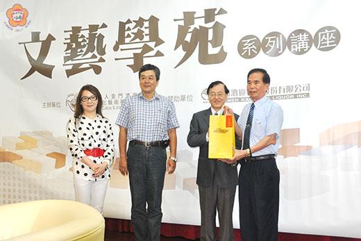 由財團法人金門酒廠胡璉文化藝術基金會主辦、財團法人聯合文學基金會合作企劃的「2013文藝學苑系列專題講座—金門‧新聞報報」昨日於金門大學舉行,邀請知名媒體人金門出生長大的時事評論員董智森主持,及資深媒體人周玉蔻小姐、盛竹如先生主講,精彩風趣的演說,妙語如珠,讓現場高潮不斷。 是項活動分別於5月25日上下午在金門大學楊肅斌廳舉辦,金酒公司董事長李文選、總經理吳秋穆、縣府社會處長方天吉,金門大學鄭愁予教授、胡璉文化藝術基金會董事李福井,以及地區新聞界與藝文界人士,及金門大學師生等近三百人到場參加。 李文選董事長在開場致詞時指出,金門酒廠胡璉文化藝術基金會為推動全民閱讀的風氣,來提升民眾的文學素養,特別辦理系列講座,第一場榮幸邀請到國內耳熟能詳、名嘴中的名嘴,大牌中的大牌,周玉蔻小姐、盛竹如先生,由他們引領我們來讀新聞,分享他們多采多姿的新聞生涯;並在外表憨厚,滿腹經綸、大牌中的大牌、名嘴中的名嘴,金門籍古崗的董智森來做開場引言,相信在他們三位專業媒體人的幽默詼諧、舌燦蓮花的講解中,讓大家輕鬆開懷氛圍中來領悟真理,希望大家在此高水準的文學饗宴中受益。 金門大學客座教授名詩人鄭愁予代表金門大學校長李金振出席歡迎大家到金門大學文藝學苑講座,他說,早年也是看盛竹如主持的新聞節目、而周玉蔻進新聞界他就認識,他們的模樣不變,風度更趨成熟,而董智森在談論性節目中是個了不起的射手,一舉槍來就中的,表現金門精神。他也對於金酒公司不僅提供民眾就業機會、也舉辦藝文活動,對金門做出很大的貢獻。 鄭愁予也說,他個人雖然是寫詩的,但最景仰新聞業,常在美國讀書得了寫作的學位後,還選擇了愛德華大學新聞學院,新聞是他一生景仰的專業職業,非常高興新聞界之知名之士在金門討論,尤其兩岸大學最傑出的校長會議即將在金門大學舉行,金門大學是校長會議的寶地,在此開過會後事業有更好的發展。 活動是由金門出生長大的知名媒體人董智森主持,董智森曾任職中國時報、聯合報記者,主跑市政新聞,歷經台北市多任市長,包括許水德、吳伯雄、黃大洲、陳水扁、馬英九等,他目前主持並活躍於台灣螢光幕,他在百忙中再度受邀回來金門主持這場媒體主播面對面講座,也讓「金門‧新聞報報」演講活動精采無比。 他在分享自己從事新聞工作甘苦時也說,要從事新聞工作,要懂得抓住自己的特色去發展,跑新聞要懂得去觀察,主動積極。 昨日演講於上午十點開講,政大新聞系畢業的資深媒體人周玉蔻,一路由報紙至廣播、電視,本身就有說不完的精采故事,她藉由廣播經驗,引領金門鄉親深讀新聞,並分享她的精采新聞生涯。 她指出,新聞工作有時是很寂寞的,新聞工作要能隨著時代進展,不斷去克服困難,也要為社會公平正義發聲。她也對於金門有漂亮的海灘環境,認為舉辦時裝秀、小影展很有特色。 下午場的演講於下午二時起展開,盛竹如主播不慍不火的男中音,暢談如何進媒體成為名嘴,及如何成為臺灣首位具有主播職位的記者、著名新聞主播、電視節目製作人及節目主持人與主管,以及主持《強棒出擊》等在1980年代深受歡迎的電視節目,又曾為體育節目擔任旁白,以及開創「類戲劇」的先河等等。 昨日他也與現場許多年輕粉絲面對面互動,對於有人問他採訪新聞時遇到爭議時如何面對,他微笑的說,新聞人對於對的事要堅持,也要懂得維持新聞人的尊嚴。