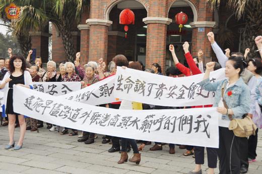 「阿母ㄟ心情!」,前水頭一百多位媽媽們昨母親節在前水頭社區發展協會理事長許華玉帶隊下,手持白布條走上大馬路抗議,並齊聲高喊:「請政府儘速施建水頭商港聯外道路、還給水頭安全安寧」。這一群媽媽們要為孩子、家人的安全請命、發出母親們內心深處的沈痛與心聲! 「生命誠可貴、安全價更高」、「小三通大家受利、水頭人受害!」、「水頭人的悲哀與無奈」、「我們的訴求還給水頭安寧」、「我們的呼籲水頭商港聯外道路儘早施建」,前水頭一百多位媽媽們包括年長阿嬤、中年及年青的母親們,每日過著耽心受怕日子,暗夜哭泣,昨天走出來發聲傳達她們為人母的心情與處境。 昨天前水頭全體居民也紛紛走出來,為下一代的安全、社區安寧發聲。金城警方也派員警現場維持交通秩序及安全,整個抗議採柔性訴求,過程理性、平和。所有媽媽們在抗議活動結束後,也前至田埔城隍廟、護國寺等宮廟拈香祈福,祈祝家人平安、金門社會和諧。 前水頭社區發展協會理事長許華玉指出,前水頭是大小金門、小三通唯一的出入道路,每日車流量驚人,然而該路段彎曲、窄狹,險象環生,曾發生多起車禍及死亡悲劇、翻車等意外,居民生命安全嚴重受到威脅、而大小車輛行經時震動造成房屋龜裂受損,以及噪音、空氣污染等,對水頭居民身心戕害甚鉅。 許華玉表示,水頭的母親們為孩子生命安全請命,請大家能感同身受為人母親的心情,她們要求不多,請政府儘速施建水頭商港聯外道路替代,還給水頭安靜、安寧及安全的環境,也讓她們的孩子可以在安全環境下平安健康成長。 金水里里長黃國民指出,水頭現有九百多戶、居民人數一千三百多人,唯一出入道路巷道多、彎道多、路又窄,每天還要承載小三通及大小金門龐大的交通流量,若無替代道路其負荷太大,居民生命安全及財產毫無保障,請政府儘速施建水頭商港聯外道路替代與疏解。 黃國民表示,金門要進步,一定要建設,而建設勢必要有一部份犧牲,但不能為了保護鱟及紅樹林而犧牲寶貴人命。希望政府、地方民代、民眾同情水頭人的處境,因為人命都沒有了,哪來保育!他並表示,水頭是居民安身立命的地方,現有道路兩側皆是家廟、房子,實不宜進行道路的拓寬,所以水頭商港聯外道路一定要施建成功。 前水頭全體居民訴求內容:「民國101年小三通進出人次達145萬餘人次,大金門與烈嶼輸運量達近85萬人,另來金旅遊人次達128萬人次,創歷年新高,也凸顯人流廣大,帶動金門的物流、活絡金流。但鄉親們可曾想過大小車輛、工程車輛,每天從村中呼嘯而過,帶給水頭村是噪音、廢氣、危險與不安。其中,曾發生有位母親在該路段被撞死;另黃氏三房宗祠也被吊車壓毀,讓居民每天飽受驚嚇,長期以來,水頭人忍氣吞聲,為的是金門長期發展。 水頭商港工程即將完工,接續是要興建旅客通關大樓,以及將港區新生地招商引資,將會引入更多人潮,所以闢建港區專屬聯外道路確有必要,且是要及早完成,以早日還給水頭一個寧靜安全的生活環境,這是水頭人最大的期盼! 金門要建設,這是全縣縣民的共識,建設難免會產生破壞,但應設法減至最低程度,針對日前該工程因環保問題而停止,我們深表遺憾,誠摯呼籲「環保人士」、「縣府代表」,平心靜氣坐下來談,選勘傷害最小的路線,選擇最佳施工方式,讓工程早日施建,不要商港完工了,但路還沒通,水頭人能忍這麼久,相信「環保人士」、「縣府代表」,能夠忍一時,大家攜手合作將這一條路打通,金門才能邁向康莊大道,否則,談金門建設恐將淪為空談!鄉親們!加油!