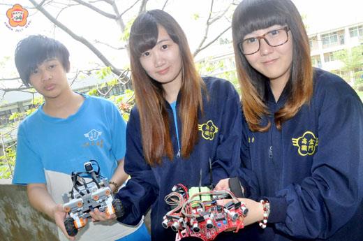 金門農工資訊科學生在今年「2013年全國智慧機器人競賽」拿下了「自走車競速比賽」A組第一名、第二名、C組第三名,另有A組兩佳作、C組兩佳作。 其中,A組指定以「樂高」系列的機器人參賽;金門農工另以「利基」機器人參加C組的比賽。據金門農工資訊科主任陳逸勤的說明,金門農工成立機器人中心始自民國九十七年,從第一次參賽至今,次次都能得獎;不過,過去都是以利基機器人參賽,這次則是第一次以樂高機器人參賽。 獲「自走車競速比賽」A組第一名的學生是李孟霖(女)、林玨霖(女)、許乃立(男);他們另外還得到了C組的佳作。 獲「自走車競速比賽」A組第二名的學生是陳松茂、王藝傑。獲「自走車競速比賽」C組第三名的學生是陳詩孟、許繁榮;他們另外還得到了A組的佳作。另外,蔡金福、楊承諺在A組、C組各得到佳作。他們的指導教師是陳逸勤、鄭清堅、蔡紹文。 李孟霖去年曾與楊佩蓮合力在「2012人工智慧單晶片電腦鼠暨機器人國內暨國際邀請賽」的「人工智慧競速自走車比賽」中得到了全國第一名;今年又和林玨霖、許乃立聯手在「2013年全國智慧機器人競賽」拿下「自走車競速比賽」A組第一名。 今年,李孟霖等人是以「鳳龜乃」做為隊名參賽。「鳳」取自李孟霖的外號「鳳梨」;「龜」取自林玨霖的外號「傑尼龜」(玨唸ㄐㄩㄝ);乃是取自乃立中的首字。 再次拿到全國第一,李孟霖覺得很高興;不過,她和林玨霖都把首功歸功於許乃立。林玨霖表示,他們能致勝的原因,是聽取老師的建議,把自走車做到小而巧-結構看似簡單,性能反而不簡單。 許乃立表示,藉由比賽,他學會了如何用「RobotC」語言寫程式;在過程中,老師要他們靠自己摸索而不是靠老師教,因為只有自己動手去想、去試、去修改,才能真正學到東西;靠老師教,學了很快就會忘記! 陳松茂、王藝傑、陳詩孟、許繁榮等人表示,抓緊時間,多練習,多付出,得到的就會越多;在過程中,他們對程式語言及邏輯概念的掌握都有了明顯的進步。 金門農工實習處主任劉國棋表示,在這次競賽中,學生們也把「高瞻計畫」所推動的「感測器」零件應用到機器人身上了。 陳逸勤表示,這次出賽的學生,過去都已經有經驗,上手很快,效率也快,還能主動找時間練習。 他說,雖然金門農工有離島生的升大學保障名額;不過,有些學校很注重有沒有機器人參賽經驗或得獎經驗;因此,這次的得獎,對他們未來撰擇學校將會有所助益。此外,對學生而言,能把程式語言應用在機器人,學習程式語言就不會那麼枯燥,技術也會變深。 他表示,過去,金門農工主要是發展利基機器人,今年則是第一次以樂高機器人參賽。在「2013年全國智慧機器人競賽」的「自走車競速比賽」中,A組限定使用「樂高」機器人;B組限定使用「智高」機器人;C組則是非「樂高」及非「智高」的機器人。 金門農工過去發展的是利基機器人,對利基機器人已經很熟悉,因此對於利基機器人主要偏重於程式語言的設計。 樂高是全球知名的套件,但金門農工學生今年是第一次以之參賽,因此從外型結構的組裝,到對應程式的設計,都必須兼顧。 陳逸勤表示,接下來,他們將同時發展利基機器人與樂高機器人,然後隨著科技的發展進行調整。 金門農工校長劉湘金表示,金門農工自成立機器人教學中心之後,年年都有好成績;這些學生再次傳承了過去的好表現。她希望學生們在這個領域好好發揮潛力與創意,不斷提昇技術與水準,也歡迎對機器人有興趣的國中端學生來這裡學習。