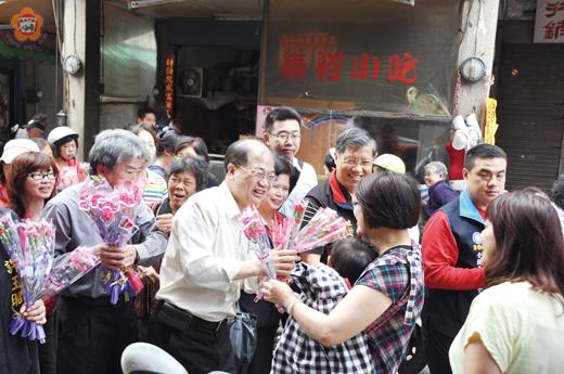 向媽媽們賀節國民黨前往市場贈康乃馨