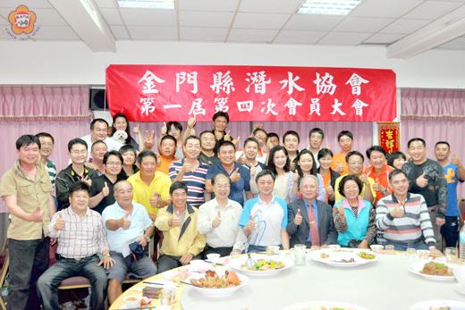 金門縣潛水協會昨日辦理第一屆第四次會員大會暨聯誼餐會,縣長李沃士、議長王再生都到場致意,也對於該協會推動地區潛水運動、提倡正當休閒活動的成效表示肯定。 金門縣潛水協會於昨日晚間在國慶飯店辦理第一屆第四次會員大會暨聯誼餐會,由理事長歐陽儀雄主持,六十多位會員到場參加,縣長李沃士、議長王再生、議員王碧珍都到場致意,他們也肯定該協會致力於推動潛水休閒運動的努力與成效。 理事長歐陽儀雄表示,金門四面環海,該會以提倡正當休閒活動,培訓地區潛水人員為目的,自成立四年以來,已辦理潛水訓練培訓了地區二百多人取得潛水員合格證照。 歐陽儀雄也特別感謝縣府、議會、消防局、縣立體育場、海龍部隊的支持與協助,才能讓該協會不斷的成長,四年來透過潛水運動結合很多同好,潛水的足跡包括綠島、海南島等,未來將持續走向國際,擴展學員視野。 他也說,該協會自去年起並結合國際海洋清潔日辦理關愛海洋活動,於每年九月份第三週週末辦理大型淨灘活動,以實際行動來回饋關愛海洋。金門這塊土地,如果需要協會,協會一定會全力來協助。 歐陽儀雄也提到,協會希望地區潛水人口能逐年成長,本(五)月三十一日起一連三天開辦潛水訓練,歡迎有興趣學習潛水的鄉親報名參加,學會潛水進一步享受潛水運動休閒樂趣,報名電話為 0933629490,陳念誠總幹事。