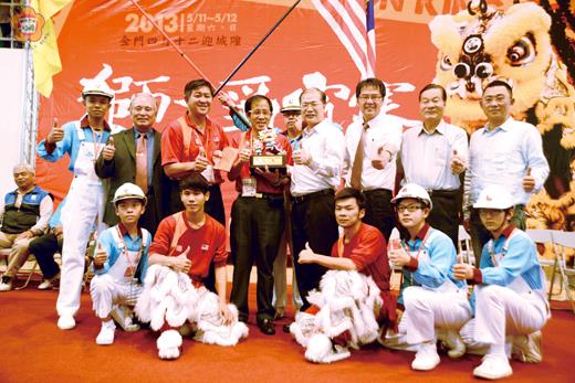 馬來獅王、風靡浯江!配合今年金門迎城隍系列活動,金城鎮公所於五月十一、十二日兩天,於金門縣立體育館舉辦「獅王爭霸賽」,不遠千里而來的馬來西亞關聖宮龍獅團技壓群雄,以零點零一分的差距驚險擊敗基隆長興呂師父龍獅團,順利摘下獅王金盃榮銜及獎金八萬元,主辦單位也與選手們相邀「明年再見」,一起訪浯江、爭獅王! 這項由金門縣政府指導,金城鎮公所及金城鎮民代表會主辦,金門縣民俗技藝發展協會承辦,台灣龍獅運動協會協辦的「二○一三金門迎城隍-獅王爭霸賽」,連續兩天假金門縣立體育館熱鬧登場,各隊展現精湛的獅藝,飛身三米高的鐵樁之上,精彩的表演讓現場觀眾看得是拍案叫絕、掌聲如雷! 而大會以南獅為指定競賽項目,各支參賽隊伍運用人體多種姿態與獅頭、獅尾雙人配合,在行進動態和靜態造型中變化,將力度、幅度、速度及耐力等揉入舞獅技巧中,完成各種高難度的動作,並以「採青」和「高樁」將獅子的「喜、怒、哀、樂、睡、醒、動、靜」等各種表情充分表現出來,與現場的鑼、鼓、鈸配樂進行,將賽事氣氛炒熱到最高點。 而獅王爭霸戰也在昨日下午舉辦閉幕典禮,由金門縣長李沃士、金門縣議長王再生、縣府觀光處長楊鎮浯、金城鎮長石兆瑉及金城鎮代會主席陳天成等人頒獎獎勵優勝隊伍。 在經過兩天的賽程比拚後,由獲得多次國際冠軍榮銜的馬來西亞關聖宮龍獅團拿下獅王寶座,贏走冠軍金盃及獎金新台幣八萬元。亞軍則為基隆長興呂師父龍獅團,獲獎金新台幣五萬元。季軍香港柔功門夏國璋龍獅團,獎金新台幣四萬元。第四名大溪金鴻醒獅團,獎金新台幣三萬元。第五名基隆海事進修學校國術龍獅隊,獎金新台幣二萬元。優勝為台灣南仙龍獅體育會、高雄常勝館醒獅團、桃園玄勝龍獅團、新竹聯豐龍獅團及高雄市兩廣龍獅戰鼓團,各頒發獎金一萬元。
