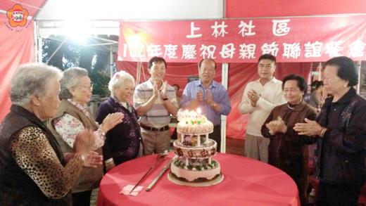 慶祝母親節,烈嶼鄉上林村昨舉辦母親節聯誼餐會,邀請上林社區婆婆媽媽一起同樂切蛋糕,烈嶼鄉長洪成發也特前往致意,祝福社區的媽媽們,母親節快樂。 上林社區昨慶祝母親節,邀請社區媽媽們聚餐同樂,社區居民特地準備大蛋糕。烈嶼鄉長洪成發、秘書方小萍、烈嶼地區指揮部指揮官鍾樹明、金門縣政府服務中心烈嶼地區主任林宜蘭、上林社區發展協會理事長陳心富、上林村長林建進等人也特到場祝賀。