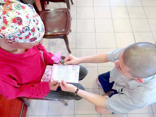 金門監獄編號「0023」的受刑人(更生人)昨天把一封信獻給前來探望他的癌母-「0023家屬」;信中說:「在上次您抱病前來探望孩兒的時候,我的眼淚不禁不受控制的流了下來…但孩兒知道再多的眼淚也洗刷不了孩兒對您的不孝…。」 法務部矯正署金門監獄昨天舉辦「溫馨五月天」關懷收容人活動,有幾位受刑人自願以「豬腳麵線」對母親奉食並獻上「母親花」-康乃馨;其中,「0023」更生人還寫了一封信呈給媽媽。 在探監過程,母子兩人與「0023」的小孩說說笑笑,享受天倫之樂。即至奉食活動進行時,媽媽流下了感動的眼淚;她說,她的希望就是兒子出獄之後,好好做人! 入獄前就已經失去父親的「0023」原本在泰源監獄服刑,三年多中,母親總是不辭勞苦,從金門遠赴台東探監;為了不讓母親辛苦奔波,他申請到金門服刑,時間又過了一年。 如今,癌母因為接受化療,頭髮已經掉光光;他自己則是因為犯錯服刑,頭髮也被剃光光。他在信中表達如下的盼望:「懇請老天爺能保佑媽媽的身體早日康復,亦期待媽媽能勇敢對抗病魔,讓孩兒有機會早日返家盡孝道…。」 「0023」因為年少輕狂犯大錯,依法必須服刑十五年九個月。他在台東泰源監獄服刑時,已考取建築類的甲級證照,希望將來出獄之後,重新為母親和孩子打拚。在金門監獄服刑期間,他常抄寫佛經為母親祈福。 金門監獄的課長許虎表示,他因為職務的關係,必須接觸很多監獄收容人,並用「服務式管理」取得他們的信任。他看了「0023」的信之後,深受感動。「0023」在金門監獄的表現良好,他相信如果一百個受刑人只有一個能改過向善,「0023」將是最可能重新做人的那一個。 為了慶祝母親節,金門監獄和福建更生保護會在母親節前夕舉辦了一系列的活動;包括「對母親的感念」徵文比賽、千里親情一線牽﹣電話孝親、面對面懇親等,希望以親情的力量,安定囚情,讓更生悛悔向上。 昨天的「溫馨五月天」活動是由監獄祕書吳聲朋主持,他表示,家人的支持是收容人改悔向上最大動力。他轉答典獄長許金標的祝福及勉勵,希望收容人對家人的支持心存感恩與珍惜,在監好好表現,早日獲得假釋的機會。