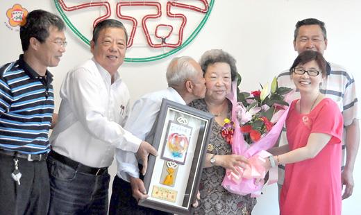 金沙鎮公所昨公開表揚十二位模範母親,媽媽領獎,子女獻花,先生獻吻,場面十分溫馨。金沙鎮代表會也致贈每位模範媽媽一個知名聯鎖品牌蛋糕,讓媽媽和家人分享獲獎及佳節的喜悅。 慶祝母親節,金沙鎮公所選拔一○二年度模範母親,計有汶沙里蔡美珠、汶沙里田秀雲、西園里王淑媛、浦山里黃戀、浦山里何張盤、何斗里蔡翠雪、何斗里莊明珍、官嶼里何玉含、三山里王水錦、大洋里陳翠玉、光前里陳秀蓮、光前里鄭寶濂等十二人獲獎,昨日於金沙鎮元順興餐廳公開表揚。該活動由金沙鎮鎮長陳昆第主持,金沙鎮民代表會主席王秀玉、副主席吳有家、代表王石堆、蔡寶愛、何斗里里長陳金德、西園里里長黃志明、官嶼里里長楊恭勤、大洋里里長吳有泰、三山里里長李賢慨、浦山里里長周家才、汶沙里里長張瀚龍、金沙民眾服務社主任李應文等出席,向媽媽賀節。 陳鎮長表示,現今是女男平等的社會,不少媽媽還要外出工作,十分辛苦。祝福所有母親天天都能像過母親節一樣開心,家庭幸福。王主席也指出,傳統的婦女多在家相夫教子;現代媽媽還要分擔經濟外出工作。所有媽媽都很偉大,心中的感佩和祝福無法全以言語形容,今年代表會特別為模範媽媽準備蛋糕,希望用不同的方式為媽媽們賀佳節。 昨日的表揚活動現場有不少夫妻檔,結髮數十年陪伴領獎,羨煞旁人。也有不少子女趕到場獻花,讓媽媽很開心。昨日大洋里模範媽媽陳翠玉的先生也陪同領獎,大方向太太獻吻傳情,炒熱現場氣氛。與會的張姓民眾說,活動很溫馨感人,除了陪媽媽領獎外,全家也會辦桌團聚向媽媽賀節聊表心意。 記者張建騰/金湖報導 金湖鎮昨天表揚模範母親張能治、黃秀治、陳李蘇治、陳李翠和、陳鈺諄、黃碧英、呂玉英、呂富、李秋良、楊羨月、周金樓、呂寶玉、盧波、陳彩雲、呂玉忍、蘇春子等十六人。 金湖鎮長蔡西湖在表揚大會恭禧當選人;他表示當選是榮譽也是肯定,不要感到「歹勢」!他提醒媽媽們在養兒育女之外,還是要注意健康,保持愉快。金湖鎮代會主席呂瑞泰在頌揚母親的偉大時,強調行孝要及時,千萬不能等!
