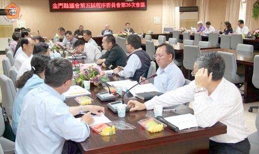 金門縣議會昨進行程序委員會,並審查通過十二項縣府提案送交大會決議,另有一件人民請願案。 這十二項縣府提案包括了「請審議本縣一○二年度總預算第一次追加減預算案」;審議制定「金門縣處理戰地政務時期臨時人員年節慰問金自治條例」(草案);「金門酒廠實業股份有限公司組織自治條例第三條、第四條、第六條及第八條條文修正案」;「財團法人金門縣社教文化活動基金會」一○一年決算書案。 以及審議文化部文化資產局補助本縣文化局辦理「一○二年度B類(古蹟歷史建築)文化資產保存維護計畫」經費新台幣肆佰萬元整(文化部文化資產局壹佰萬元整、地方配合款參佰萬元整),請同意先行動支案;審議教育部補助本縣「一○一學年度第二學期立案私立幼兒園獎勵招收身心障礙幼兒及核發身心障礙兒童教育補助經費三萬七千五百元整」,請同意先行動支,再依程序納入一○二年度第一次追加預算辦理案。 審議內政部營建署「一○二年度加強綠建築推動計畫」,獎助縣府新臺幣九十萬元整,辦理一○二年度建立綠建築審核及抽查計畫,請准予辦理墊付先行動支,再納入追加預算,以利業務推動案;審議內政部營建署補助本縣「一○二年度建築建築物實施耐震能力評估及補強方案工作經費」新臺幣十一萬元整,請准予辦理墊付先行動支,再納入追加預算,以利業務推動。 陳順正、陳火土依離島建設條例第九條規定申請購回金湖鎮山外段四十二地號縣有地,同意讓售方式處分案;請審議廢止「金門縣政府所屬各公司董事會組織準則」案;審議廢止「金門酒廠實業股份有限公司董事會組織規程」案;審議廢止「金門酒廠實業股份有限公司組織規程」案。 至於人民請願案後則為施性賢、陳晚開等二人陳情暫緩拆除民等所有管理室,以減少民等之損失及維護政府威信案。