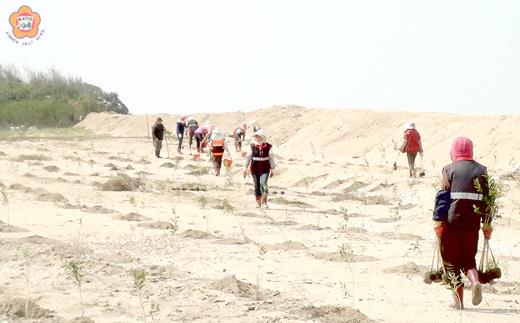 金門縣林務所自一百年起爭取農委會林務局補助,進行排雷區復育造林工作,由於海濱沙質土壤不利保水,加上環境惡劣,林務所每年動員一百位員工補植及栽種樹苗,三年來已完成六十七餘公頃之雷區造林,共種植十五萬株防風林木,目標構建完整的海岸防風林及優質林相。金門林務所表示,造林更需要護林,將持續提升全島森林覆蓋率,讓金門成為無雷永續生態島。 地區早期因軍事戰備需要,海濱大量埋設地雷,伴隨戰地政務解除,金門開放觀光及兩岸情勢和緩,基於地區整體發展及安全考量,金防部陸續排除海岸上之地雷。也因此造成金門部份保護林帶的消失,金門縣林務所為恢復原有林相,降低林衣毀損後導致森林健康度下降和生態環境的改變,自一百年起經積極向農委會林務局爭取經費補助,配合金防部排雷期程,分年執行雷區林地復育造林工作,以期全面恢復原有林相。 金門縣林務所表示,在一百年前海岸之林木及國有土地造林工作由農委會執行。經積極爭取下獲農委會林務局補助,由林務所員工自力執行雷區造林工作。配合金防部排雷期程,自一百年展開,迄今已邁入第三年,刻正於小金門陵水湖段雷區造林,前後共已完成六十七點多公頃,在海濱種下十五萬株林木。 十年樹木、百年樹人,由於金門海岸線多為沙質土壤,不只土地貧瘠、強大季風更影響樹苗之成長,環境惡劣存活率受影響。根據林務所的統計平均存活率為六成,一株新栽種之林木要長成至少需十年時間。而當金門面對建設發展之際,數十年來從軍方到政府精心造林的成果,默默守護金門,讓大家擁有良好的環境,是故造林之外保林更為要,林務所所長楊慧明做以上表示。 海岸地區先天環境差,林務所特別挑選防風、耐旱等特性之樹種,積極進行排雷區海岸防風林之復育,使其提供防風定沙之森林公益功能。而造林樹種除了必須具備上述優異功能性外,更須同時考量整體林相生物多樣性之品質。因此,林務所為維護金門海岸與內陸林相之完整,基於生態系經營的原則,在海岸第一線種植木麻黃,其他較為內層則栽植水黃皮、黃槿、海桐及白千層樹種,以期達成海岸林木復育外,並藉以更新原有木麻黃林相,營造多層次海岸森林景觀。 林務所所長楊慧明也指出,每年除了植樹節植樹造林外,員工分八至九班,近一百人,自過年後配合雨季持續做行道路之補植,前年度雷區造林補植工作。並整地待雨季著手該年度雷區造林,前後需三至四個月的時間,接著將面臨七至九月的颱風季,做好林木防護工作,員工默默耕耘,營造現今綠化成果,功不可沒。