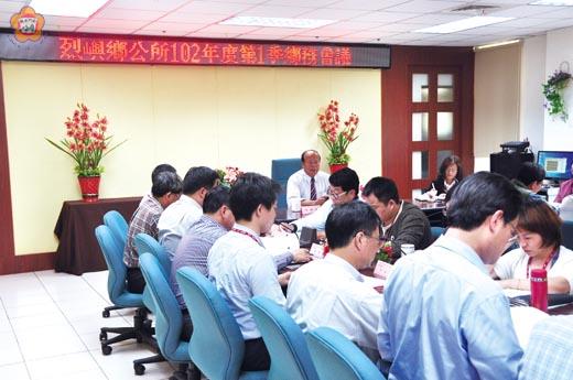 烈嶼鄉公所日前辦理「烈嶼鄉公所一○二年度第一季鄉務會議」,針對過去工作進度及未來展望進行檢討及策勵未來。會中鄉長洪成發相當關心公所推動觀光的腳步及各項大小工程的進度等,洪成發並勉勵員工要能夠「熱心服務、實在積極」。 烈嶼鄉公所第一季鄉務會議,假烈嶼鄉公所二樓會議室舉行。會議由洪成發主持,有公所秘書方小萍及各課室主管及業務承辦人員及公所同仁、各村村長等出席參加會議。 會中,鄉長洪成發做出數點指示,他要求觀光客對於觀光路線之規畫要加快腳步,且應統計蒞臨小金門的遊客數量以利未來觀光政策之制定。而小金門推動電動車政策,也應儘速與計程車業者進行座談,降低民間反彈。此外今年芋頭節也應先行規劃,對於芋頭家族公仔的設計也要先進行,務必做到盡善盡美。 另洪成發重視鄉民健康,對於清潔隊剷除銀膠菊工作也相當關心,並指示持續剷除,同時對於鄉內大小建設的工程進度與相關問題要求相關單位務必確實掌握,確實驗收結案。並對日前遭媒體報導公所同仁上班摸魚一事,表示嚴禁同仁上班時間打電動及看漫畫,呼籲員工自愛。 秘書方小萍補充,公所重視職務代理制度,並籲請公所同仁熟悉職代業務,以免造成鄉親洽公不便,並且要注意電話禮貌,避免對詢問的鄉民們有不禮貌的態度。