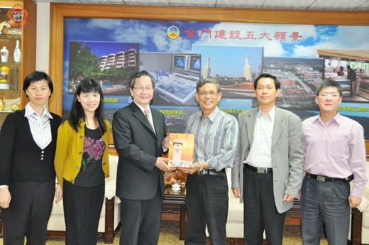 地方行政研習中心李忠正昨抵縣府拜會,親自下帖邀請李沃士縣長到國際中心專題演講,分享「金門經驗」及施政理念。李縣長赴台向交通部表達機票抗漲立場,由副縣長吳友欽代表接受。 吳副縣長昨下午接見地方行政研習中心李忠正一行,由縣府人事處長翁正義、副處長錢忠直陪同,受到歡迎。地方行政研習中心是各縣巿中高階級官員培訓搖籃,昨天也拜會金大爭取合作與策略聯盟。 李忠正指出,地方政府為提升地方自理效能,成立「智庫」、「地方自理研究中心」,搜集各縣巿基本資料、研究成果並放置在雲端,作為各縣巿政府交流平台,提供彼此觀摩機會。 其中「智庫」成立,屬各縣巿政府共有,請各縣巿政府多加利用,此外,各縣巿公務員經驗交流方面,又有中心學術講座,邀請各縣巿長、專家學者專題演講,分享施政理念與經驗,上月曾邀請花蓮縣副縣長演講,成效良好。 有鑑於各縣巿與國際接軌必要趨勢,李忠正也表示,該中心設置有「涉外人才培育訓練」,以英語為基礎,訓練後可協助各縣巿政府涉外業務領域;他同時強調人才培育的重要。吳副縣長也說明離島金門在人才培育困境,爭取支持。 李忠正並邀請李沃士縣長專題演講,分享「金門經驗」,包括作為小三通交通樞紐、金門觀光產業、金門高粱酒等議題,提供各縣巿腦力激盪及經驗交流,促進經濟及觀光產業的向上提升。吳副縣長代表李縣長接下這份盛情邀請。 吳副縣長並引用新加坡李光耀一句話:「新加坡競爭力來自世界人才」,他說,金門最感憂心是人才不足,因一水之隔,人才招攬不易;另在縣府每月專題講座,講座人選延聘也倍感辛苦,李忠正則表示樂於協助促成。 吳副縣長同時說明李縣長建設五大施政理念、金門總體概念藍圖將定案、加上小三通的特殊地理條件,以及成為全國22縣巿最幸福城巿,金門發展實具特色,期待有專業人才到金門貢獻。李忠正鼓勵公務員充實新知技術,厚植競爭實力。