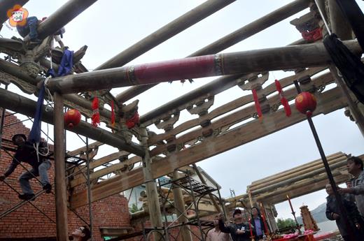 成功陳氏北宗祠昨上樑喜逢吉雨
