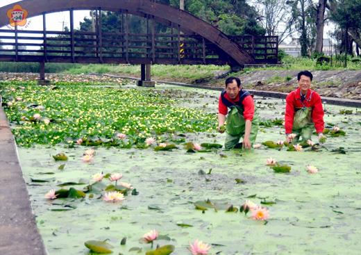 假日何處去,農試所休閒農場是民眾踏青及烤肉的不錯選擇,為營造更好的休閒生態環境,農試所自去年十月起,自台灣引進三種品項蓮花,於休閒農場烤肉區旁的親水區種植,經過員工細心照料及整理,讓親水區煥然一新,盛開的蓮花佈滿水道,美不勝收,農試所歡迎鄉親前往賞蓮。 位於農試所休閒農場烤肉區旁的親水區,由於有一段時間乾涸,以致雜草叢生,不僅影響景觀也讓原本美麗的河道少了自然植物的生氣。農試所所長李廣榮,為營造良好的休閒生態環境,提供鄉親或遊客一個良好的休閒空間,並且透過水生植物的種植為環境帶來良好的孕育,故經過思考及評選後,自台灣引進蓮花種植,恢復原本的自然景觀,也在蓮花的點綴下,現已美麗如昔。 農試所所長李廣榮表示,去年十月自台灣南部引進三種品項的蓮花,分別是觀音蓮、黑美人蓮、水晶英,共計三百十五棵。經過員工細心的照顧,生長非常良好,經過連續兩週的環境整理,讓三種蓮花有更好的空間,目前正值開花期,歡迎鄉親闔家到訪烤肉、踏青、賞蓮。 農試所員工表示,觀音蓮、黑美人蓮、水晶英分別呈現淡橘色、粉紫色和黃色之花朵,民眾不論在河道上的木橋上遠觀,或在烤肉區旁欣賞,都能飽覽蓮花清雅的美姿。 農試所員工也說明,蓮花花期長,到入秋前都會不斷交替開花,目前正是盛開期,尤其是陽光充足時花朵綻放地相當耀眼,大致在上午十時至下午二時間,花況最好。 農試所表示,親水區蓮花盛開,歡迎親子假日前往賞蓮,但提醒民眾勿下水也不要任意攀折,讓它有良好的生長空間,也讓更多人能夠觀賞到美麗的蓮花。
