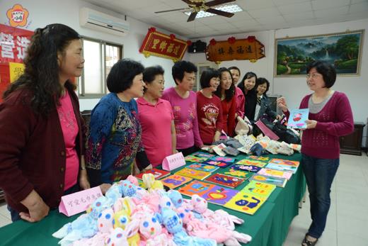 圖文/董森堡 金城社區健康營造中心為結合社區資源、帶動民眾從事手工藝品創作,三月起開辦社區成長學習班,昨日並於金城民生社區活動中心辦理學習成果展。在會場內展出由社區大學彩繪教師黃珍珍指導創作的作品,這些精製的手工藝品包括了彩繪零錢包、彩繪手提袋、可愛毛巾兔偶、不織布手工書、美麗毛根花等創作品。 參展的成員表示,班內活動不但結合了社區資源,更提供民眾多元的學習成長課程,讓學員有機會進行手工藝品創作、相當有趣。
