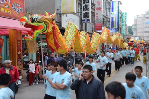 龍獅齊出遊街趣、鑼鼓喧天迎城隍!迎接農曆四月十二城隍遷治慶典,金城鎮公所昨晚於北門北鎮廟由四境陣頭組成遊行隊伍踩街,熱鬧的隊伍繞經後浦四境,炒熱金城市區的喜慶氛圍,金城鎮公所歡迎鄉親與遊客一同參與這場繽紛絢麗的宗教嘉年華會,體驗傳統藝陣活動,瞭解金門浯島城隍宗教文化意涵。 金城鎮公所表示,二○一三金門迎城隍「傳統藝陣體驗活動」於四月二十日至五月十七日每日下午五時至晚上九時分別由四境廟宇推出代表性陣頭供遊客現場體驗,四境傳統藝陣體驗活動為期四週,一境舉辦一星期,上週由南門境推出傳統藝陣體驗,昨日起至五月三日每日下午五時至晚上九時,將由北門北鎮廟主打陣頭體驗項目醒獅、鑼鼓、神輦、十二婆姐、踩高蹺等。 而昨天晚間六時整,北門遊街隊與各境陣頭組成遊行隊伍,結合烈嶼鄉南塘三太子、蓮花大鼓陣、北門醒獅團、威揚戰前鼓、十二婆姐、賢聚泰安宮舞龍、東門公揹婆、西門神將、南門千順神將等陣頭;依序從北鎮廟出發,經模範街、東門代天府、南門天后宮、西門外武廟、城隍廟再返回北鎮廟,並於晚上七時於北門北鎮廟前廣場舉行陣頭表演活動。 金城鎮長石兆瑉表示,每年農曆四月十二日,後浦四境均會進行精彩的陣頭演出,為了讓地區民眾及遊客瞭解迎城隍宗教文化,今年特別巡迴四境舉辦傳統藝陣體驗,希望鄉親更認識傳統藝陣的意義和樂趣,傳承浯島城隍文化意涵。 另外,五月四日至五月十日將移師東門代天府,體驗項目包括了公揹婆、鑼鼓、神輦、三太子,五月十一日至五月十七日則於西門外武廟,體驗項目包括了蜈蚣座、跑旱船與舞蛤精、粉閣、民俗陣頭,時間均為下午五時至晚間九時,歡迎地區民眾與遊客一起參加。