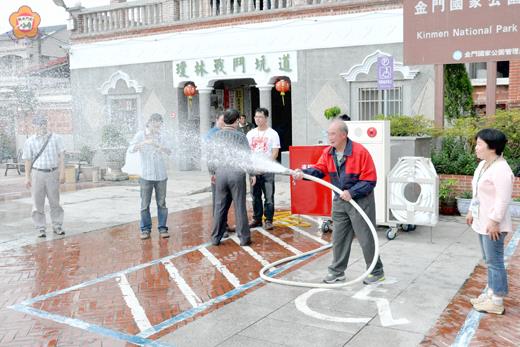 「金門古蹟歷史建築防災講座及演練」活動,昨日移地金湖鎮瓊林社區進行實地講座與演練,經由專家學者傳授防災及維護知識與執行要領及實際操作,讓每位參與者深感獲益良多,也進一步提升古蹟災害預防及緊急應變能力。 由文化部文資局主辦,金門縣文化局指導,金門大學承辦,金門縣消防局、瓊林社區發展協會、台灣能美防災公司協辦的這項古蹟防災講座及演練活動,昨日續在瓊林社區舉辦一天講座與實地演練活動後圓滿落幕。 昨日上午的講座演練活動於上午九時於瓊林里辦公處舉行開幕式,由本縣文化局長李錫隆、文化資產局林其本、中央警察大學教授簡賢文等人主持,金門大學助理教授曾逸仁、文化局秘書黃雅芬、課長郭朝暉、金門縣消防局勤指中心主任陳金城及地區古蹟管理人、使用人等到場參加。 文化局長李錫隆指出,金門縣有很多珍貴的文化資產,這些文化資產不只是金門的、全國的,也是世界的,應該好好維護保存傳遞給下一代,所以,金門有著特殊的任務,就是好好的維護、保存這些珍貴的文化資產。而金門在世界遺產維護方面也做得相當積極,文化資產是申請世遺重要的區塊,希望大家一起來配合,把後續的工作推動得更好。 古蹟歷史建築文化資產保存,不怕一萬,只怕萬一,李錫隆說,文化資產不容遭受損壞,像是火災之類的,因為每一件都要保存流傳下去,他也舉例韓國、日本等國發生的古蹟火災案例,使得該國的古蹟歷史味道減弱,金門不希望有這樣的事發生,應該提升古蹟災害預防及緊急應變能力,把這些地區珍貴的文化資產保存下去。 文資局科長林其本指出,防災演練在古蹟的管理維護佔很重要的部分,管理維護是一種自主性的維護,古蹟或歷史建築所有權人及其使用者,有很多細節,他們最清楚,透過此次的研習講座及演練,協助大家建立防災相關的知識與操作能力,相信會有很好的收穫。 昨日上午的課程主題,分別由金門大學建築系助理教授林美吟講授「世界遺產監測防災機制及案例分享」;消防局救災救護中心主任陳金城主講「金門聚落防救災現況檢視」;簡賢文教授、連俊傑研究員、謝蕙如研究員等三位於瓊林聚落分組現場授課指導「聚落防災檢視」。 下午則假於瓊林蔡氏家廟、瓊林里辦公處前廣場進行防災演訓、初期滅火設施操作,由簡賢文教授團隊、金門縣消防局、台灣能美防災股份公司指導包括發現火災後的通報,及乾粉滅火器、消防栓等器材的現場操作。每位參與學員上場親自操作,都感獲益不少。