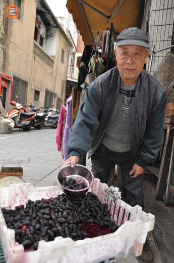 4月是桑椹盛產的季節!金門農友-林金城利用未耕種的田地打造成桑椹園,所種出桑椹果實粒粒碩大汁多味甜、呈美麗的深紫色,令人垂涎欲滴。桑椹兼具美容及保健養生,風味獨特,廣受消費者喜愛。 今年八十歲、家住在頂后垵的農友林金城,他拿鋤頭種田種了一輩子,由於體力今不如昔,而年青一代又不願挑起承傳重任,他不忍見田地荒廢長雜草,在6年前開始改種水果,目前他的果園,除了桑椹、還有枇杷等各類水果。 林金城果園內所種植的桑椹從不使用農藥防疫,遇到蟲害就直接徒手除蟲,採取自然的農耕方式。據他說,為了食用安全,他採摘桑椹果時,是一粒粒採收,由於桑樹中夾有蛛網及蚊蟲,摘採過程備極辛苦。 林金城指出,桑椹成熟約在農曆二月底至三月初,採收期約一個月左右,他的桑椹園種植約有三、四十株桑樹,每年約可採收四、五百斤;他一日可銷售二、三十斤,每斤價格約三十元。 樂天知命的林金城說,他的果園採收除了家人食用、分享親友外,每年都自產自銷。昨天甫到城區貞節牌坊旁叫賣,立吸引菜籃族、機車族、遊客搶先嘗鮮購買。一下子兩籃子的桑椹即銷售逾半以上,大受歡迎。 據一名消費者表示,桑椹加冰糖熬煮可以治酸痛、降血壓、降火氣、抗感冒病毒、又可釀酒製成蜜餞,成為春夏居家健康飲品,所以每年這個時候他一次都會買回二、三斤熬煮湯供家中老小補身飲用,對健康有益。 桑椹屬桑科植物,桑樹上所結的是一種聚合果,嫩時色青,味酸澀,熟時由紅轉藍再轉為紫黑色,汁多味甜帶點酸,含有豐富的維他命C、葡萄糖、蘋果酸、鮮食生津止渴。更可製成潤肺退火的桑椹果醬。 林金城說,桑椹又稱「長壽果」,補血及顧氣管,是養生的天然食品。他的桑椹不噴農藥,若要生食只要用水洗一洗即可食用,十分安全。據了解,農試所近年大力推廣桑椹種植外,另也鼓勵濃縮成果汁,提高經濟價值。 據農試所指出,濃縮桑椹果汁的製程包括,果實選別、洗滌、瀝乾、糖煮、添加酸劑、過濾、裝瓶密封。製作果汁所留下的桑椹殘骸,還可以曬乾做成蜜餞。 值得注意是熬煮桑椹時,要先用小火,火燄不可觸及鍋底;等出汁時,再加冰糖,然後開大火。桑椹與冰糖的重量大約是一比一,才是成全風味的關鍵。