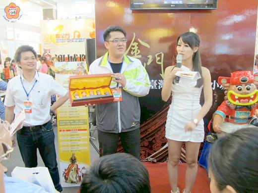台中國際旅展金門館,自4/19一連四天展出,今是最後一天,請把握機會,好禮獎不完。縣政府觀光處歡迎兩岸三地好朋友來金門參與迎城隍活動,行銷金酒、推介金門觀光。 「台中國際」旅展金門館,以迎城隍為主題行銷,自4月20日至5月21日暢遊金門3天2夜及2天1夜「2013金門迎城隍│浯島宗教文化觀光季」行程。為期一個月活動,提供遊客體驗金門多元觀光特色。 2013台中旅展-金門館參展廠商名單:金門酒廠實業股份有限公司、雲之海民宿、安德力、鄉村、金瑞、金廈、巨陽、金環球旅行社、王大夫一條根、聖祖食品、金合利鋼刀、喜來順等,整合金門地區旅行業者、飯店業者、特產業者、金酒公司、民宿業者。 縣府觀光處配合「台中國際」旅展推出金門館,展出期間每日現場都有花式調酒活動,Show girl熱力四射,主持人熱場與有獎問答,天天送禮(備有金門特產一條根、貢糖、手工麵線、牛肉乾及限量典藏金門刊物等著您來帶回家)。 現場由金門酒廠實業股份有限公司提供金門高粱酒試飲酒並送一口杯;同時每日於展館現場皆有慢遊金門、心靈之門等快速導覽金門特色影片播放。歡迎遊客到金門館捧場,驚豔一下。值得一提是到金門館參訪的旅客,可以與館內最具特色的「狀元紅公仔」留影。 金門地區每年農曆4月12日有一項重大的宗教盛事,就是金門迎城隍巡安繞境活動,這項特殊的民俗宗教活動內容豐富,更蘊含深厚的文化及歷史意涵,包含了地方的民俗戲曲和陣頭表演,屬於金門地區最大型的廟會與民俗文化表演活動。 金門漫步遊程特色:體驗金門傳統地方節慶盛事│迎城隍活動、金門傳統藝陣體驗;體驗金門最新、最熱門景點:古寧頭電瓶車遊程(須提前7日預約,082-321721)、地雷主題館、獅山砲陣地(8吋榴砲操操演節目)、迎賓館…等。 凡參加金門迎城隍快樂行之行程者,依規定時段來金,並持遊程所附戳章卡至指定地點集滿戳章﹝心誠則靈章戳區(城隍廟)、傳統藝陣章戳區(總兵署)、烈嶼鄉文化館章戳區﹞,即可至總兵署領取「迎城隍主題酒」乙瓶,限量3,000瓶,數量有限贈完為止。 金門於廈門島外,早期多年的軍事管制,讓金門保留了現代都市沒有的文化內涵,純樸民風、美麗海濱、戰地史蹟、自然生態、人文(閩南式建築、番仔樓、碉堡、迎城隍、中秋博狀元餅)及特產(砲彈鋼刀、貢糖、一條根、高粱酒),是生命力強韌的無價文化資產。