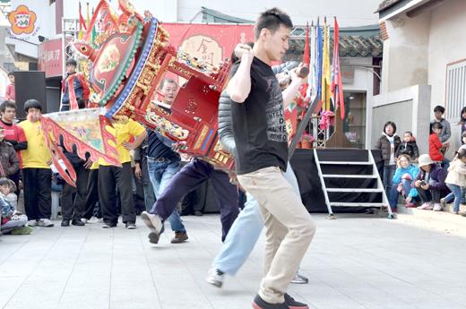 「2013金門迎城隍│浯島宗教文化觀光季」~強力主打「金虔誠、金好玩、金精彩、金好康」,縣府昨開幕第二天端出九大項精采民俗技藝、攝影及體驗活動,吸引眾多親子、遊客到訪,炒熱迎城隍熱鬧氣氛,也帶動商機。 縣府迎城隍系列活動,昨推出兩岸三地民俗藝陣博覽會、講古說書研習、傳統藝陣體驗、兩岸三地民俗文化體驗研習、民俗技藝歡樂吧、心「城」則靈-祈福活動、體驗金門民俗打卡送好禮、迎城隍攝影比賽、專人導覽後浦小鎮等豐富活動。 昨適逢週日假期,加上旅遊季的屆臨,總兵署的活動現場人潮一波波湧現,除了本地鄉親、學子及阿兵哥外,還有為數不少的大陸、台灣的遊客,以及外國朋友,共同欣賞民俗文化內涵及體驗其中樂趣,拉近彼此距離,也行銷金門觀光。 「扛輦體驗」傳承地區傳統民俗廟會慶典活動,讓參與者透過親身體驗祭典隆重的儀式,一組4人,體驗時間約2至3分鐘,每組賣力的展演輦步和扛輦的技巧方式,博得現場熱情掌聲喝采,現場圍觀表演的人潮達上百人。尤令年長者感動重拾回憶。 兩岸三地民俗藝陣博覽會,安排有軟甲陣、打花草、鑼鼓陣、絲竹樂、神輦、妝人扮相、藝閣、蜈蚣座、醒獅團。每一攤位都人氣沸騰,不少鄉親們說:「人潮多,比過年還要熱鬧!」也帶動城區小吃店、飲料店等商機。 其妝人扮相,現場提供有韓湘子、七仙女、張果老及何仙姑的服裝,免費借給二至十歲的小朋友穿上妝人扮相,同時再試坐蜈蚣座上,讓小朋友個個開心不已,在一旁的家長們看見子女開心,自己也跟著開心,並搶著為子女拍照留影,譜出溫馨親子圖。 縣文化局迎城隍攝影比賽,邀請各界攝影同好,一起用相機來記錄並分享對迎城隍活動之感動。主題則限以102年4月20日至5月21日期間,金門迎城隍活動人、事、物、景等相關題材。昨現場湧入攝影同好們用手中的相機捕捉鏡頭,作品收件自四月二十日起至五月三十日截止。 體驗金門民俗打卡送好禮活動,配合設施體驗時間,打卡處略為不同,四月二十日至五月十七日:城隍廟祈福、傳統藝陣體驗-四境宮廟(擇一)、總兵署藝陣體驗、烈嶼文化館傳統民俗體驗,五月十七日至五月二十一日:城隍廟祈福、總兵署藝陣體驗、烈嶼文化館傳統民俗體驗。 心「城」則靈-祈福活動,每日兩名導覽人員之定點解說,讓參訪城隍廟的遊客及香客對金門迎城隍之節慶文化,能有更深層認識;現場並提供祈福卡,引導香客將虔誠之祝福希望,書寫祈福卡並懸掛於祈福牆,祈求護佑平安一整年。時間:四月二十日至五月二十日,10:00~18:00,地點:浯島城隍廟。 還有「民俗技藝歡樂吧」,每一攤位推出有吃、有玩,只要集滿戳章即可兌換民俗技藝品乙份、或棉花糖等禮物,現場大排長龍。金城分局副分局長黃維章、員警鄭勝男等也在維持交通秩序及管制車輛。