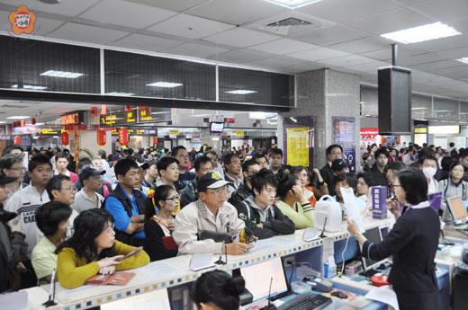 拜鋒面過境所賜,台金空中交通昨日恢復輸運,尚義機場擠爆人潮,台金航線各航空公司往返班機班班客滿,一票難求,各航空公司調派增開臨時加班機,除了表定往返台金七十航班,往返增開三十四航班來輸運旅客,並將小飛機改飛大型客機,直到晚上十時三十分完成旅客輸運工作,來往共疏運近萬名旅客,讓苦等了兩天客機的候補旅客順利成行回到工作岡位。 尚義機場十七、十八日受濃霧影響,大部分班機被迫取消,二千多位觀光客被迫滯留,還有四百多人夜宿航站。昨日拜鋒面過境所賜,將盤踞機場的濃霧吹得一乾二淨,上午七時三十五分立榮航空高雄飛金門的871班機搶先進場,揭開疏運序幕,一掃旅客「無機可乘」的陰霾,但小三通客輪載來更多旅客,機場還是人滿為患,各航空公司設法調派加班機輸運,將旅客送往台灣。 由於台金機位一票難求,一大早即湧進超過三百名旅客搶著登記補位,擠爆航站大廳,航站大廳座無虛席,被迫到航站外席地而坐,他們抱怨連連,還不時為補位順序大動肝火、破口大罵,並向航空站抗議要求增開加班機。機場航空公司櫃台前更是人擠人,眾多旅客多埋怨航空公司不加開班機,候補機位一票難求,其中有一名旅客拍桌抗議,遭到航警勸開,幸好四家航空公司陸續增開三十四航班來疏運旅客,讓苦等了兩天的旅客「有機可乘」順利抵達目的地。 隨著鋒面來臨,天候好轉,昨日中午過後,小三通中轉而來的旅客也不斷湧入尚義機場,航空站表示,除了表定往返台金七十航班,各航線往返增開三十四航班輸運,各航空公司往台灣班機班班客滿,大部分因十八日濃霧滯留金門的旅客都已經順利返台。昨日立榮最後一班加班機大約晚間九時三十分許起飛往高雄,讓苦等了兩天客機的候補旅客順利成行回到工作岡位。 根據金門尚義航空站提供的數據,昨天全天共飛航一百零四個架次,輸運的旅客人數達近萬人,其中從台灣飛至金門的旅客數共四千三百多人次,載客率七成;從金門飛往台灣共五千四百多人次,載客率百分之百。