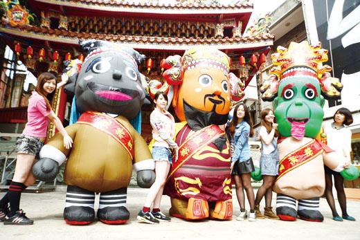 歡樂迎城隍、打卡送公仔!為宣傳二○一三金門迎城隍浯島宗教文化觀光季所推出的三個吉祥物,縣府觀光處昨於金城鎮北鎮廟召開記者會,並搶先推出城隍爺、范將軍、謝將軍三大吉祥物,可愛的造型吸引不少民眾觀賞,Q版外型更貼近年輕族群,觀光處並期盼透過手機打卡送公仔的活動,推展金門觀光、邀請大家一起來迎城隍、逗熱鬧! 金門年度最大的民俗慶典「迎城隍」活動即將熱鬧展開,金門縣政府將在四月二十日當天下午二點在總兵署前廣場,除了有熱鬧的開幕儀式之外,還有「與城隍吉祥物拍照、吉祥一整年」打卡活動,城隍爺、范將軍、謝將軍三尊可愛的吉祥物,將現身金門總兵署,四月二十日開幕當天只要持手機「和吉祥物照相並進行打卡與上傳FB動作」,即可至總兵署旅客服務中心兌換禮物,每人限領一份,數量有限,歡迎大家一起來找祂們的身影。 如活動當天無法來金的遊客,在四月二十至五月十七日活動期間也有舉辦「體驗金門民俗 打卡 送好禮」活動,凡於活動期間於金城四境宮廟傳統藝陣體驗、城隍廟祈福、總兵署民俗文化體驗、烈嶼文化館民俗體驗等四處、或於五月十七至五月二十一日在城隍廟祈福、總兵署民俗文化體驗、烈嶼文化館民俗體驗等三處「每處打卡+每處體驗拍照+全部上傳FB」,即可至總兵署兌換「金門限定紀念品」。兌換時,請持手機出示FB上打卡的照片,每人(含每一FB帳號)限領一份。禮物數量有限,送完為止,限於本活動期限內兌換。金門縣政府邀請全國民眾一起來金門迎城隍,用網路歡喜逗熱鬧。 此外,為期一個月的宗教文化觀光季,除了在四境宮廟、總兵署有體驗活動之外,每周六、日下午二時至五時三十分在總兵署前廣場舉辦的博覽會都有不同的主題性活動,包括藝陣表演、民俗體驗和打卡送好禮等節目,相關詳細活動內容,可至「二○一三金門迎城隍」官方網站查詢。(網址:412.kinmen.gov.tw/或412.kinmen.gov.tw/)