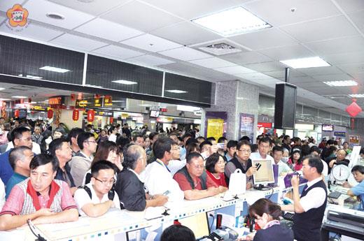 尚義機場受濃霧影響昨日開開關關,各航空公司上午航班都取消,中午過後只有復興航空台北、高雄航班順利抵達輸運旅客,其他航空公司航班都無法成行,縣府啟動台金海運專船來金輸運,有近二千名旅客因「無機可乘」被迫滯留金門過夜。李縣長非常關心特別交代縣府觀光處親往機場慰問旅客,貼心地提供了礦泉水及麵包、毛毯給旅客充飢禦寒。 據了解,尚義機場連續二天受濃霧影響,大部分班機被迫取消,首日一千多名觀光客被迫滯留,還有四十八人夜宿航站。昨日一大早受天候影響暫停起降,各航空公司上午航班都取消,中午過後只有復興航空台北、高雄航班順利抵達輸運旅客,其他航空公司航班都無法成行,但好景不常,機場於下午五時海霧籠罩再度關場被迫取消,一天下來往返飛航18航班,取消56班次,近二千名旅客滯留機場無機可乘,四百多位旅客在航站過夜,縣府協調啟動疏運B計畫「海空運協調緊急應變機制」,協調船公司啟動金門快輪輸運旅客,昨日在機場大廳發號碼牌受理船位登記,將於今(十九)日清晨從料羅港開航返回台中。