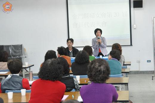 金門縣婦女會昨召開第二十屆第一次會員代表大會,完成理監事改選,縣議員許華玉眾望所歸蟬聯理事長,王昭琪以服務的熱忱再度受到會員肯定,連任常務監事。 金門縣婦女會昨日下午二時起在金門高中輔導室會議室召開第二十屆第一次會員代表大會選舉理監事,由理事長許華玉主持,縣府社會處科長李文堆列席指導,身為烈嶼分會代表召集人的洪麗萍議員,也偕同分會代表跨海來大金門參與,各鄉鎮分會選出之會員代表踴躍出席。 會中除了由總幹事蔡麗娟進行工作報告,同時也討論通過金門縣婦女會一○一年度歲入歲出經費決算表、金門縣婦女會一○二年度工作計畫、金門縣婦女會一○二年度歲入歲出經費決算表等三項追認提案。 隨後進行理監事選舉,由會員代表針對二十位登記參選理事中票選出十五名理事,五名候補理事,從七位登記參選監事中選出五名監事、二名候補監事。並接續召開理監事聯席會議,由十五位理事互選出常務理事與理事長;五位監事中互選一位常務監事。 金門縣婦女會第二十屆理監事改選結果為: 理事長:許華玉。 常務理事:李金治、唐麗德、陳玉梅、王秀玉。 理事:薛辰汝、楊赤玉、李美珍、陳玉珍、林梨娟、許能麗、黃明鸞、陳秀治、方秀英、陳雅蘭。 候補理事:陳昭治、蔡寶愛、黃金玉、洪慧靜、林绣英。 常務監事:王昭琪。 監事:劉湘金、傅君珊、呂寶玉、蔡素芬。 候補監事:吳曉蘋、張彩梨。 五鄉鎮婦女分會的召集人分別是:烈嶼分會召集人洪麗萍、金寧分會召集人薛素姿、金城分會召集人張含麗、金沙分會召集人楊意金、金湖分會召集人黃秀珍。 昨日許華玉也當場宣佈聘請蔡麗娟持續擔任該會總幹事,副總幹事莊招治(兼任會計)、許雲英任公關組長、黃莉莉任活動組長、陳玉敏任出納。