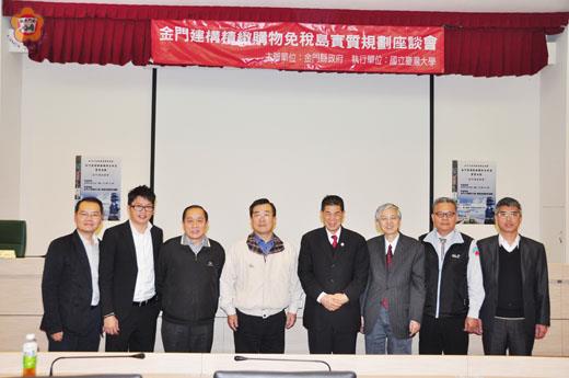 金門縣政府昨日舉辦一場「金門建構精緻購物免稅島實質規劃」金門場次座談會,邀集中央、縣府內外各相關單位、民間組織與學術單位與會進行座談,並由規畫單位台灣大學建築與城鄉研究所進行免稅島的相關效益、影響、配套等方向的簡報。 這場由金門縣政府主辦,台大城鄉所執行的座談,於昨日下午二時起,假金大圖資大樓陳開蓉國際會議廳舉辦。縣府行政處長陳朝金、金大校長李金振、台大城鄉所教授林建元、研究員陳一夫、縣商會理事長蔡育仁、縣觀光特產協會理事長王建順、及縣府財政處、觀光處、金酒公司、金管處、關務署均派員參與。 陳朝金表示,舉辦座談會之目的,除向各界說明外,蒐集與會者對規劃案的了解程度、地區業者需求及對於規劃案的其他建議等項目,以作為未來修正及進一步規劃的參考意見。 負責簡報的陳一夫指出,與潛在對手相比,金門機會大,陳一夫指出,金門比起潛在對手大嶝島,優勢在於商品價格低、商品為真貨並獲得陸客認同、金酒在陸具知名度、卻為台灣與金門品牌。且陸客赴廈門人次每年超過四千萬,搭船進行海上看金門活動也有一百二十萬,若能吸引這群人口,商機頗大。但他也提醒,申辦手續、商品種類、交通娛樂餐飲住宿不足是需要改善的,且法令限制仍多。