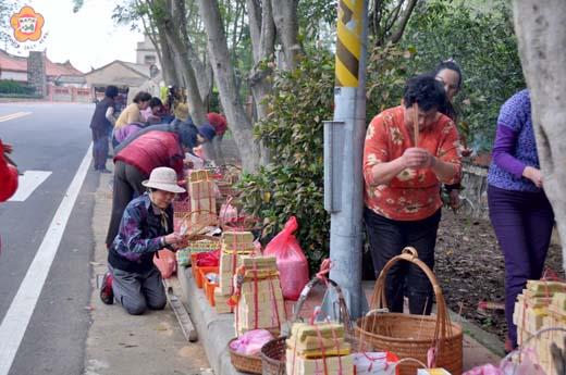 昨日農曆三月初三是古寧頭北山「鎮東宮」奉祀神祇「玄天上帝」聖誕,村民依神祇指示在村口舉辦隆重路祭,祭拜古寧頭大戰犧牲的國共兩軍官兵,祈求境內平安,萬事順遂。 縣長李沃士昨下午也前往「鎮東宮」虔誠上香,祈求神明保境平安。 根據北山村民指出,在古寧頭中元普渡祭拜國共兩軍「好兄弟」,五十多年來,已蔚為地方農曆七月的習俗活動。農曆七月初八日下午,古寧村民依例在村口和出海口舉辦隆重路祭,南山、北山和林厝村民祭拜古寧頭大戰犧牲的國共兩軍官兵,祈求境內平安,萬事順遂。 而農曆三月初三在北山村口的路祭,根據北山村民表示,是依「王爺」指示辦理,並已辦理有三、四年時間。 民國三十八年十月二十五日爆發的金門古寧頭戰役,中共軍隊近萬人渡海進犯金門,在古寧頭一帶登陸,國共兩軍血戰三天兩夜,共軍全數非殲即俘,為台海轉危為安第一仗。古寧頭為共軍登陸地點,也是國共最後決戰場,兩軍官兵死傷最慘重,因此,戰後,古寧村包括南山、北山和林厝三個傳統聚落,每年農曆七月初八在北山路口、關帝廟口、南山出海口、北山出海口、及林厝路口等處舉行路祭,村民以豐盛祭品,就地虔誠祭拜國共兩軍的「好兄弟」,祈求境內平安,萬事順遂。 古寧村以前是在部隊團部集體普渡,約在民國七十二年後,當地「關帝廟」神祇指示說古寧村「軍魂」很多,可在村落各路口祭拜,居民遵奉神旨在各村口舉辦路祭,流傳至今。期望透由祭拜祈求居家平安順利,也蔚為鬼月中普渡的習俗。