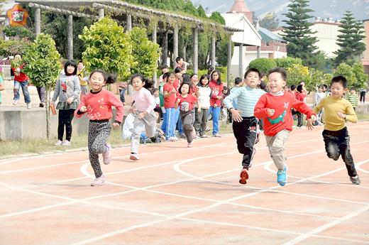 何浦國小慶祝兒童節舉辦短距離「徑」賽,一至六年級各班選拔代表參加,昨日下午學子歡喜騁馳運動場,用輕鬆快樂心情做運動。學生形容活動健康又有趣,好不快樂。校長李國安表示,藉活動鼓勵學生養成運動習慣,練就健康的身體,為一切學習奠定良好基礎。 響應「一○二年終身學習行動年三三一」運動,何浦國小第三度結合兒童節舉辦短距離「徑」賽,由一至六年級學生以班級為單位,選派學生參加,分男、女生,六十公尺、一百公尺以及高年級兩百公尺,學生昨日下午滿心歡喜享受比賽,邊跑邊笑邊回頭,逗趣舉動為活動製造不少笑點,也讓全校老師及與會家長感受學生歡喜運動的氣氛。 校長李國安表示,活動已是第三年舉辦,每年和跳繩比賽穿插辦理,目的在鼓勵學生多運動,練就良好的體能,培養健康的身體。活動除了響應三三一運動政策外,也和縣府力推的三好二習慣不謀而合。學生的滿足心情全寫在臉上,令人感動,非常樂見這樣的學習反應。 根據比賽辦法,一至六年級每班於每一項比賽選派三人,每人至多可參加兩項,也讓許多學生實現成為選手的心願。何浦國小志工愛心社社長廖莉婷表示,結合節慶何浦教職團隊會為學生規劃慶祝活動,此次結合兒童節辦理短距離體育競賽,為學生提供更多參加比賽的機會,老師用心,孩子開心,家長更歡心。 學生在場上邊跑邊笑,不時回頭看看左右的同學,笑料不斷,逗得師長哈哈大笑。其中,四年級的廖亞瑄說,跑步比賽慶祝兒童節既健康又有趣。二年級的何宥慶參加一百公尺比賽贏得男生組第一名,他說,平常就有運動習慣,不論是參加學區運動會及短距離競賽,讓他學到只要平日練習有耐心,不要放棄,就能跑出好成績。 何浦國小表示,慶祝兒童節短距離徑賽成績揭曉,各組錄取績優前三名,共計有八十四人勝出,將擇期頒獎鼓勵,希望為學童開心、健康度過佳節。