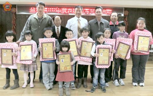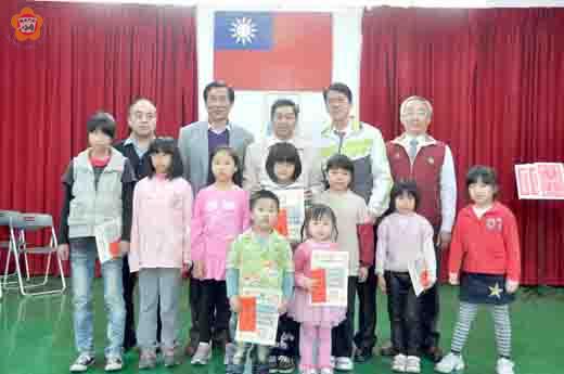 金湖鎮昨天舉辦102年兒童節慶祝活動,表揚唐孟慈、吳彥辰、王翔宇、陳人暟、陳力寧等七十多位優秀兒童。 頒獎活動由鎮長蔡西湖主持,參加活動及觀禮者有得獎學生及其家人、金湖鎮民代表會主席呂瑞泰、副主席謝鴻儒、鎮代蔡乃靖、開瑄國小校長李錫南、柏村國小陳為學、多年國小校長張秋沐、金湖國小校長翁明國、正義國小校長陳順德等。 蔡西湖勉優兒們得獎後仍應保持平常的態度,追求五育並進。呂瑞泰勉優兒們要修養品性,孝順父母。 翁明國代表校長們致詞,他期勉優兒們回顧過去,深耕現在,勵志未來。他要「天子驕子」、「天之驕女」們立大志不要立小志。 目前就讀六年級的優秀兒童中,唐孟慈、吳彥辰、王翔宇、陳人暟長大都想當教師,陳力寧想當警察。 今年被表揚的優秀兒童如下: 開瑄國小-六年級唐孟慈、五年級董靖寧、四年級唐孟璠、三年級許君豪、二年級孫敦勤、一年級邱語心、蔡宜蓁、國幼班蔡鎧任、幼中班蔡宜安、幼小班蔡欣蓓。 柏村國小-六年級吳彥辰、五年級呂宗晏、四年級謝璠、三年級謝雨桐、二年級謝葳妊、一年級謝澂鋅、幼大班鄭媛虹、幼中班呂怡儒、幼小班謝睿恩。 多年國小-六年級王翔宇、五年級楊子卉、四年級陳妍君、三年級鄭凱庭、二年級吳俊宏、一年級楊翎均、幼大班呂竑達、幼中班關重釳、幼小班陳詩婷。 正義國小-六年級陳人暟、五年級陳友正、四年級余星儀、三年級陳彥霖、二年級陳慧軒、一年級陳姿妤、幼大班陳融、幼中班陳采昕、幼小班陳愷帷。 金湖國小-101班許少洲、102班陳雅庭、103班葉千銳、104班王之芸、201班張俊毅、202班陳信琦、203班曾德姮、301班吳雨桐、302班陳咸佑、303班楊舒絢、304班蔡詠芯、401班陳秋娟、402班張鳳竹、403班許云謙、404班謝菀軒、501班呂子彤、502班陳為新、503班陳景宗、504班王佳萱、505班呂秉融、601班陳力寧、602班董竑、603班黃聖絜、604班李旭淳、莊俊生、大黃班黃詩晴、大綠班胡定紘、大紅班邱柏鈞、大藍班李弈靜、中黃班李至瑩、中綠班陳宜嫻、中紅班王之容、中藍班謝雨璇、小黃班黃浩宸、小綠班羅渝蘋、小紅班李唯楷、小藍班余祖葳。