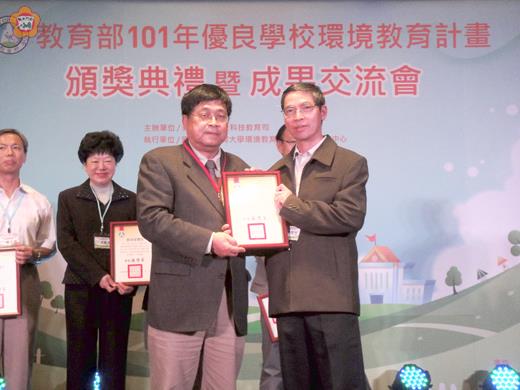 卓環國小榮獲「101年全國優良學校環境教育獎」,校長林英生代表學校赴台接受教育部公開頒獎。卓環國小致力推動環境教育不遺餘力、落實環境教育成果有目共睹,深獲中央肯定,也為金門爭光。 「101年優良學校環境教育計畫頒獎典禮」,日前在臺大集思會議中心舉行,由教育部主任秘書王作臺頒獎表揚全國100所獲選優良環境教育計畫之學校,卓環國小榮獲殊榮,由校長林英生代表領獎。 卓環國小學校環境教育是在林英生校長積極規劃下,善用天然資源,營造優質的後山生態園區,創造出一個環境優美、生態豐富的景觀,並活化校園閒置空間改造為能資源教育中心。同時在各教學領域的課程設計、校園的硬體設施搭配教學,以及學校活動的安排等積極融入環境教育內容,並在學務組長、教導主任及校內同仁的共同協助下,榮獲此殊榮,實屬不易。並藉推動環境教育成效優良的學校案例,提供全國學校學習與交流,提升學校環境教育推動品質。經過各縣市初選及教育部決選,遴選出全國100件優良環境教育計畫。 卓環國小獲得殊榮,再次展現該校對於環境教育努力的成果,這些努力成果將卓環國小營造成一所小而精、小而美,為一所精緻且環保的綠能小學,能獲得教育部的肯定,是全體師生的榮耀。