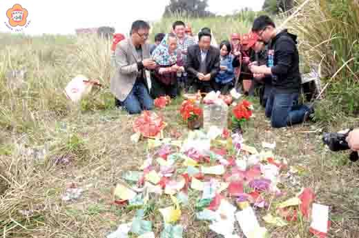 六十多年前從大陸到金門打石,因兩岸隔絕,客死異鄉埋骨金門金城鎮「新山義塚」的福建省惠安石匠陳炳源後人自去年首度來金門掃幕後,昨日陳炳源兒子劉瓦火再次帶領子孫三代人專程小三通來金門掃墓,他們也建議業管單位能將義塚整建美化,以慰亡靈。 福建惠安石匠陳炳源之子劉瓦火(原名陳瓦火,因母親改嫁改姓劉)帶著妻子張叻、兒子劉國平、呂愛國、劉國雄,媳婦曾玉珍、曾細月、曾秀華,女兒呂玉蘭、劉玉美,孫子劉鼎、劉用、劉聞捷、呂弘聲,孫女劉思雅、呂惠慧等一行十五人,昨日上午搭乘泉州往金門的小三通客輪抵達金門。 在金門愛心基金會董事長許金龍、烈嶼鄉公所前秘書呂合成等人引導及熱心人莊順良的協助下,劉瓦火子孫三代人來到陳炳源的墳前,清除雜草與垃圾,並以家鄉帶來的三牲、金紙、花飾等,及金門的發粿等擺放在墳前,燒香祭拜、掛墓紙、焚燒紙錢、燃放鞭炮,為長年沈寂的墓塚帶來短暫的熱鬧氣氛。 劉瓦火與子孫昨日也以家鄉帶來的墨與宣紙拓印墓碑,希望能找到墓碑上更多刻印的細字,進一步發現陳炳源的確切死亡日期。 陳炳源是福建省惠安崇武五峰人士,民國三十四年,他從廈門到了金門打石,後來編入石工隊,跟隨石匠們數次搬遷。民國三十七年間,陳炳源的太太還曾從廈門來金門探望他,隔年(三十八年)後因兩岸隔絕,滯留金門,自此兩地失聯。民國三十九年,年僅四十餘歲的陳炳源因病去世了。由於親人不在,他的同僚好友好心幫忙,將其葬在金城鎮吳厝與香蓮廟後方之間的新山義塚,並刻立墓碑。 劉瓦火目前在惠安崇武經營知名的九龍璧石雕廠,事業發展也很順利。他說,考慮到父親之墓為風水靈穴,暫時不考慮挖墳撿骨火化及攜骨灰回惠安,但於每年清明節都會率同子孫到金門掃墓祭拜。 昨日中午劉瓦火一家人也特地前往金湖公墓,為當年幫父親辦理後事刻立墓碑、過世後葬於金湖公墓的駱建發墳前上香拜拜。並於下午四時二十分許搭乘小三通客輪返回石井。