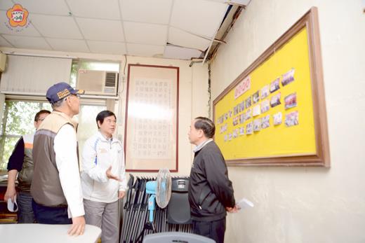 位於莒光國小的退休教師協會會館出現漏水狀況,縣府日昨邀集相關單位人員前往勘察,就屋內漏水及掉漆等情形進行會商,縣府秘書長盧志輝並要求民政處、社會處等相關單位儘速協助恢復原狀,還給退休教師們一個乾淨的環境。 縣府秘書長盧志輝是在一日早上九時三十分許,會同財政處處長黃景舜、社會處、民政處等人,前往莒光國小會勘金門退休教師協會會址,瞭解退休教師們反映的會館內漏水及裝潢掉落等問題,一行人並與退休教師協會理事長鄭慶利實地訪查理事長辦公室及會員大廳,查看漏水狀況與牆面油漆、輕鋼架剝落情形。 對於會館發生漏水問題,盧志輝指示社會處應先就二樓替代役使用浴室的管線問題進行修復,防止水源滲漏至一樓;另外大廳內輕鋼架掉落一事,盧志輝則要求財政處編列籲算改善,一行人約在十時許結束會勘行程。