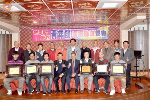 金寧鄉公所昨日舉辦優秀青年表揚活動,副縣長吳友欽、鄉長陳成勇、鄉代表會副主席李開陣頒發獎狀、獎品予得獎青年,肯定他們的表現,也期許扮演帶頭示範的角色,影響更多年輕朋友參與鄉務,多關心地方事,以年輕人的活力,一起努力來促使金寧鄉更進步。 這項慶祝青年節表揚活動,於昨日晚間六時假海洋餐廳舉行,由鄉長陳成勇主持,副縣長吳友欽、鄉代會副主席李開陣、鄉代表李正騰、辛愛華、金寧鄉調解委員會主席李國平、金寧民眾服務社主任李錫平及轄區各校校長、各村村長、鄉公所秘書傅仰鑫與各課室主管、村幹事在場觀禮。 副縣長吳友欽代表李縣長向獲獎青年道賀肯定,並指出青年是國家的中堅,可見人才是一個國家之首要,而中興以人才為本,獲獎的優秀青年堪稱是國家未來之中堅。鄉長陳成勇肯定得獎者的優異表現,也期盼鄉內的青年朋友見賢思齊,貢獻心力,共同來促進鄉務發展與繁榮。 受獎的優秀青年有古寧村李鉞賢、安美村林佳宏,湖埔村楊志團,盤山村翁明鼎,后盤村許智林,榜林村許績偉等六位。