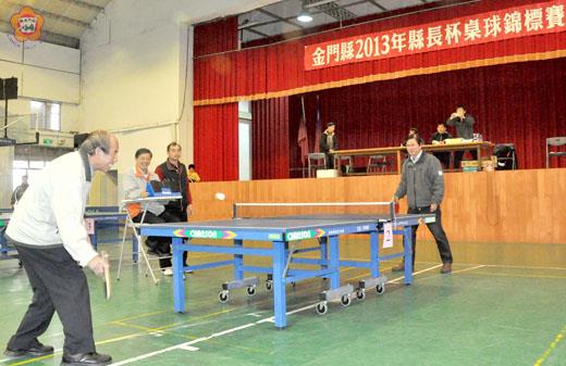 2013「縣長盃」桌球邀請賽,昨起在金城國中體育館開打,總計有五十三隊共三百一十二位桌球好手揮拍進行二天的比賽,昨經過一天激烈對戰後,社會男子組分由烈嶼鄉公所奪魁;機關學校組由金湖國中掄元;而金門高中A、金門高中B分別拿下高男組、高女組的冠軍;國中男子組、國中女子組第一名為烈中B、寧中;而中正A、古寧A分別抱走國小男子組、國小女子組的冠軍。 為推展桌球運動風氣及響應政府推行全民運動,由縣府主辦,金門縣桌球運動委員會承辦的這項「縣長盃」桌球賽昨日上午八時卅分起在金城國中體育館熱鬧開賽,全縣總計五十三隊三百一十二名選手,分為社會組、機關學校組、高中男、女組、國中男、女組、國小男、女組等組進行三百八十四場次(團體八十四場次、單打三百場次)競技,球友在攻守間相互切磋球技、聯絡感情。 昨日比賽由縣府秘書長盧志輝、教育處長李再杭開球,地政局長林德恭擔任裁判。而包括金門高中校長蔡錦杉、議會秘書長許丕贊、環保局長楊世宏等參與單位的主管及各參與學校的校長或主任也到場為球員加油打氣。 盧志輝秘書長指出,縣長盃桌球賽已經有好幾年的歷史了,這項賽會看到很多選手來參加,感到非常欣慰,桌球運動以往是金門運動的重點推展項目,可惜在頂尖選手的培育尚沒有見到很好的績效,不過,運動主要目的是強身,透過活動的舉辦,能有更多的人來參與,從中相互切磋球技,同時針對具有優秀潛力的選手能夠做重點培育,讓他們未來在國內的桌壇甚至在世界桌球領域能夠發光發熱,為地區爭光。 昨日的比賽為團體賽,除了國小的男、女組採五點單打制,其餘各組均為四單一雙(單打、單打、雙打、單打、單打),比賽採用中華民國桌球協會審定之桌球規則,經過激烈的競逐後,各組比賽成績分別為: 社會組的第一名為烈嶼鄉公所;第二名金湖鎮公所;第三名三菱旅行社、金湖桌協A(並列)。 機關學校組的第一名為金湖國中;第二名地政局;第三名警察局A、署立金門醫院。 高中男子組第一名為金門高中A;第二名金門農工。 高中女子組第一名為金門高中B;第二名金門農工。 國中男子組的第一名為烈中B;第二名沙中;第三名湖中A、城中B。 國中女子組的第一名為寧中;第二名城中A。 國小男子組的第一名為中正A;第二名金鼎A;第三名賢庵A、金鼎B。 國小女子組的第一名為古寧A;第二名中正國小;第三名古寧B。 2013「縣長盃」桌球邀請賽今(三十一)日在原場地續進行一天的賽程,預定於下午三時三十分進行閉幕,頒獎表揚各績優隊伍與個人。