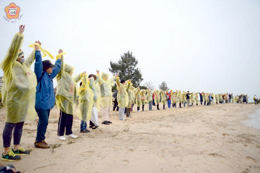 浯江守護聯盟昨日再度於浯江溪口舉行「認識浯江溪、情牽母親河」活動,吸引上百名關心此議題的民眾熱情參與,其中還有來自香港的車友,剛赴金大甄試的學生也到場聲援,呼籲縣府應重視自然生態、保護金門的美麗山河。 昨日下午二時許在浯江守護聯盟的號召下,許多民眾自發性的前往浯江溪口夏墅石牌前參與「認識浯江溪、情牽母親河」活動,民眾透過望遠鏡的架設觀察,欣賞浯江溪口的豐富濕地生態與鳥類之觀光資源,同時透過文史解說瞭解位於當地的浯洲古八景「董嶼安流」與「珠江月夜」,以及夏墅海景觀變化和金門俗諺中「夏墅罾」在地文化。 昨日雖然飄著細雨,但仍舊無法澆熄民眾的熱情,參與的成員們在預定進行道路工程的海岸線上手牽著手,齊聲喊出「守護母親河、守護浯江溪」的口號,並在鄰近的欄杆上綁上象徵守望的「黃絲帶」,祈願母親河浯江溪重現美麗的風光。 這項活動除了在地民眾的參與外,還有來自師大地理系的學生,以及二十餘名從香港遠道而來的車友,甚至在昨天趕到金大參與甄試的同學,他們表示在網路上得知這訊息後特別前往現場參與,一行人同聲呼籲應保護大自然環境,厚植觀光資源與競爭力,留給子孫們一個美好的家園環境。