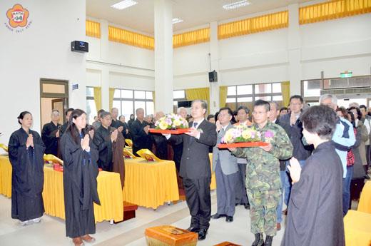 為配合清明節慶超薦亡魂,金門縣殯葬管理所舉辦的金門地區102年度春祭(清明節)超薦法會暨新建殯儀館禮廳、靈堂及家屬服務中心啟用灑淨儀典,本月廿八日起假殯葬所懷恩堂展開四天法事,由上達下千法師主法,昨日的祭典由金門縣長李沃士、金防部政戰主任蔡承棟少將率領各界首長上香致祭,藉由灑淨誦佛經等法會方式用以迎福消災,祈祝先靈先賢護佑地方平安、浯島子民安居樂業。 102年春祭(清明)超荐法會係由金門縣政府指導,金門縣殯葬管理所主辦,金門佛教會承辦,並於本月廿八日起至卅一日在殯葬所懷恩堂舉辦為期四天的春祭(清明)超荐法會。 法會第一天下午一時卅分舉行淨壇引魂安座儀式,昨第二天上午八時三十分恭誦慈悲三昧水懺,並於上午九時舉行超薦法會祭禮,由金門縣長李沃士、金防部政戰主任蔡承棟少將擔任主祭官。 李沃士表示,為配合清明節慶超薦亡魂,金門縣政府特舉辦春祭超荐法會,同時舉行新建殯儀館禮廳、靈堂及家屬服務中心啟用灑淨典禮,李縣長也感謝佛教界朋友共同協助舉辦這項超薦法會。他說,即將到來的清明節是我們中國固有傳統文化、慎終追遠,藉以追思祖先弘揚孝道,是項特別具有意義的活動。 記者李金鎗/金寧報導 清明節即將到來,金門縣政府與金門防衛指揮部昨天在古寧頭萬聖祠舉辦國共軍陣公亡將士暨各姓氏神主牌祭典,由縣長李沃士、金防部政戰主任蔡承棟少將主祭,率軍民各界代表向英勇殉國的將士們上香、獻花,藉以緬懷歷代各姓、國共軍士亡靈,祈祝亡魂安息,庇佑地方與兩岸和平。 這項國共軍陣公亡將士暨各姓氏神主牌公祭儀式在昨天上午十一時假古寧頭萬聖祠(戰史館旁)舉行,由縣長李沃士、金防部政戰主任蔡承棟少將主祭,副縣長吳友欽、縣府秘書長盧志輝、金防部政戰副主任李清俊上校、縣議員李誠智、金寧鄉長陳成勇擔任陪祭,金門縣李氏宗親會理事長李錫榮、古寧頭李氏宗親會卸任理事長李再杭(縣府教育處處長)、古寧頭社區理事長李開陣(金寧鄉代表會副主席)、古寧村長李朝金、縣府各局處主管及金西守備隊隊長等各界代表近百人與祭,進行上香、獻花、獻爵、獻饌、獻果等儀式,氣氛莊嚴肅穆。