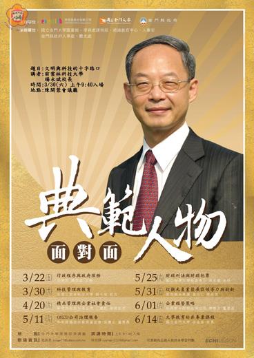 由金門縣政府人事處、金大共同舉辦的「服務管理趨勢講座-典範人物面對面」系列講座,第二場明(30)日上午10時假金門大學開蓉演講廳登場,邀請前國立雲林科技大學校長楊永斌教授就「文明與科技的十字路口」為題進行專題演講,歡迎鄉親、學子踴躍前往聆聽。 楊永斌教授係土生土長的傑出金門子弟,對於科技教育之貢獻良多,擁有豐富的科技與教育管理經驗與知識,此次演講將就「文明與科技的十字路口」議題,提供寶貴的見解予金門鄉親大眾。 楊永斌教授現任臺灣大學土木系特聘教授(終身職)、奧地利國家科學院外籍院士、中國工程院院士、臺大工學院宗倬章先生講座 、國立雲林科技大學特約講座教授、中華工程教育學會(IEET)理事長等多職,並曾獲台灣十大傑出青年(科技發展類)之殊榮。 縣府人事處表示,明天這場演講,上午9時40分開放入場,10時開始講演,公務人員參與本次演講者,並可登記公務人員終身學習時數2小時,歡迎大家踴躍前往參與。 「典範人物面對面」系列講座共將舉辦八場,明為第二場,內容包括產、官、學在服務管理過程中的過去、現在、未來的發展及經驗,更重要的是未來的發展態勢與挑戰,內容精彩可期。