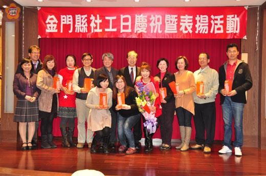 四月二日為「社工日」,縣府肯定社工辛勤,於昨日中午進行「社工日表揚活動」,由金門縣長李沃士頒贈感謝狀予李錫正、林翠滃等十位獲表揚的社工及社政人員。李沃士感謝社工平日的辛勞,並肯定所有社工人員對社會的貢獻,同時期勉大家持續努力。 社工日,為內政部自民國八十六年起,為顯示對推動社會福利工作的重視與肯定,特別明訂每年的四月二日,為全國「社工日」。縣府舉辦社工表揚,即是藉此肯定社福人員的投入參與,也利用表揚活動激勵提升社工與社政人員的工作士氣。 昨日表揚活動,於中午十二時,假金寧鄉海鱻城舉行,邀請地方社工、社政人員與會聚餐。縣長李沃士、社會處長方天吉、科長胡小玲、金城鎮長石兆瑉、大同之家主任許美鳳等人也到場致意,並與社工社政人員寒暄,勉勵平日辛勞。 李沃士肯定社工社政人員的貢獻,他在致詞時感謝所有人的努力,他指出,這個社會確實有很多地方不能盡如人意,但是也因為有社工團體的奉獻,對弱勢及需要幫助的人伸出援手。社工的工作,是一項助人積福的工作,他相當感謝所有人的努力,同時也祝賀獲表揚的優秀社工們。 今年當選為績優社工暨社政人員名單有:金門縣政府社會處李金治、林若琳、呂采徽、董燕輝、金門縣政府教育處曾定強、金門縣康復之友協會林雅好、金寧鄉公所李錫正、金城鎮公所周寶珠、烈嶼鄉公所林翠滃、金沙鎮公所黃美璇等十人。
