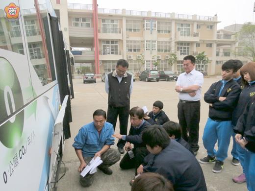 金門縣環保局昨天把「電動巴士」開進金門農工的校園,希望有助於「綠領人才」的培育。 金門農工汽車科教師黃文佑正在指導學生以「電動車的空調」為主題進行專題研究;為了提供實務體驗,環保局昨天專程把「電動巴士」開進校園,由局長楊世宏為他們說明金門縣推動綠色運輸、綠色載具、綠色產業、綠領人才以及「無悔措施」的概略;另由萬國汽車修護廠的經理黃志琳為師生們解答電動巴士的各種特性。 楊世宏表示,花了兩年的時間,工研院、環保署、中央政府各部會、金門縣府各局處,討論出一個十年六十點九八億的低碳計畫要在金門推動。其中包括綠領人才的培養,涵蓋各種綠色載具的維護及保修工作,這部分將會與高職學生未來的就業方向產生密切的關係。 他表示,推動綠色載具,必須兼顧低碳與經濟,結合民生才能永續經營;未來,金門縣政府有意讓傳統載具到古寧頭之後就「完全熄火」,改以電動大巴士、慢速電動車,構成六百人的運輸能量,串連到綠色旅館、綠色餐廳。另外,在烈嶼鄉也計畫以四部電動中巴取代現有的傳統觀光公車。 根據金門縣環保局的說明,金門縣正積極推動低碳島計畫-其中,「綠能與低碳運輸旗艦計畫」是金門低碳島五大旗艦計畫之一。 金門縣政府已經於101年度獲環保署補助經費,租用兩部電動公車,進行試運行計畫;未來還將逐步汰換金門的六十四部柴油公車。 柴油公車從製造到變成廢鐵所造成的一切空氣污染危害,都不及車輛行駛時燃燒汽油所產生的排放量。以溫氣氣體指標為例,傳統中大型巴士在移動過程中,每公里會排放1.305公斤的二氧化碳,但電動車輛在移動過程為零碳排放。 若以發電的整體碳排放而言,電動巴士運行每公里會排放0.612公斤二氧化碳,與傳統巴士比較,將可減少0.693公斤二氧化碳。 以能源成本來看,傳統中大型巴士在移動過程中,每公里的燃料成本為13.5元,電動巴士則為3元;因此,使用電動巴士,運行每公里將可減少10.5元的燃料成本。 電動巴士的運行已是未來的趨勢,維護操作管理亦是營運管理的重要環節。藉由縣府所租用的電動公車,環保局希望讓金門農工汽修科的學生了解電動巴士的結構、原理、保養程序、可能的故障狀況,希望培養維修電動車的綠領人才,讓金門朝低碳島的目標逐步落實。