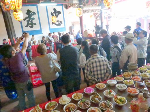 金門的「文武世家」-瓊林蔡氏於昨天(農曆二月初七)在「七座八祠」中的「大宗祠」-蔡氏家廟舉辦春祭。由於觀者如堵,人滿為「患」,讓最具特色的宗祠祭儀,因為壅塞,不夠順暢而失色;瓊林蔡氏宗親希望未來祠祭進行時,請遊客務必遠觀。 瓊林蔡氏家廟一年有兩次祠祭,春祭是在二月初七五世祖蔡靜山的祭辰舉行,秋祭是在十月初六蔡靜山夫人顏氏的忌辰舉行。 祠祭當天也是報新丁和報新婚的日子;昨天報新丁者有:蔡璨、蔡旭沖、蔡禮安……等;報新婚者有:蔡懷勳(娶詹佩禎)、蔡宗謙、蔡勝傑、蔡億泉、蔡鈺騏、蔡政志等。 瓊林在明、清兩代曾出過進士六人、舉人七人、貢生十五人、武將六人、國子監生二十七人、生員八十人,因而有「文武世家」的美譽;瓊林的里名則是「御賜里名」。 瓊林大宗祠中所奉祀的,都是有功名、有官品的列祖列宗。祭禮中有「出主」、「進主」的儀式,必須把祖龕中神主牌一一請出,依輩份及昭穆之序,由輪值的蔡氏裔孫,以祭神如神在,事祖如祖生的恭敬謹慎,斟獻酒饌、茶果及各種供品。 祠祭分「頭停」及「二停」兩個回合進行。頭停祭祀蔡氏開基始祖十七郎公暨始祖妣陳氏,配享二世至二十四世祖先,總共有三十五尊神主牌。 二停祭祀蔡氏五世祖靜山公與五世祖妣顏氏,另外配享六至二十四世的祖先,總共有二十七尊神主牌。蔡靜山是瓊林開廓基業及分枝散葉的祖先。 由於瓊林蔡氏的官祭很獨特,每每吸引許多文史工作者前往拍攝;近來的祠祭,還成了攝影課和各種研習課的授課場。 昨天,國家公園利用祠祭時間舉辦研習,因為參加者踴躍,人牆阻礙了儀式的進行;因此,瓊林宗長蔡青木、輪值頭家蔡建鑄等,都希望來客要尊重祭典,不要造成干擾。蔡青木表示,否則所謂中華民國最有特色的祭典,將從此失色! 民俗學者林建育紀錄瓊林祭祖活動已經有八、九年;他覺得這些年來,瓊林祠祭變化很多-過去比現在嚴謹許多。他認為,近年的活動,也的確會受到觀光活動干擾,值得思考解決的方式-他支持庶民文化不應被觀光文化破壞的觀點。