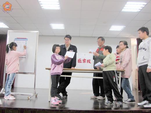 兒童節即將來臨,西口國小於日昨舉辦一場「西口國小模範生選舉投票」活動,透過民主程序票選出同學心目中最呷意的模範學生。投票結果由該校四年一班的孫若琦同學高票獲選,而孫同學將於四月三日的全縣模範兒童表揚大會中接受縣府表揚。 為了充實西口學生正確的民主法治認知,培養學生高尚的民主選舉素養,以培育未來健全公民做準備,該校特別舉辦「縣(鄉)級優秀兒童選舉票選活動」,透過群育關係,讓學生學習自由民主風度,愛你所選,選你所愛,以落實民主法治教育的推行和實踐結果。 這項選舉於日昨在該校禮堂舉行投開票,共三位候選人,分別為六年級代表蔡育杰、五年級代表洪詠絜、四年級代表孫若琦等三人。 競選過程中,政見會上三位候選人比能力、論口才。為贏得選民青睞,候選人及助選員無不使用渾身解數,為了讓選民印象深刻,候選人的單打獨鬥自我表現,或和助選員的推銷表演、搞造型,逗得全場笑聲不斷,讓競選政見會熱鬧又精彩。 西口國小校長楊肅健表示,透過公平的競選活動可以讓學童從中體會民主的真諦,舉辦校園選舉讓老師們見識小朋友的創意。他也欣見選舉過程沒有漫罵、賄選,完全訴諸票選結果及候選人學習、生活與比賽表現。 該校師長指出,當選的孫若琦平時熱心助人,謙恭有禮,學業表現優秀,常主動學習,擔任班級小老師,協助輔導學業較落後之同學,是老師心目中的好幫手,同學眼中的救援投手。而她以七十九票勝出,實至名歸。另落選者亦展現氣度給予祝福,正是民主的表現。